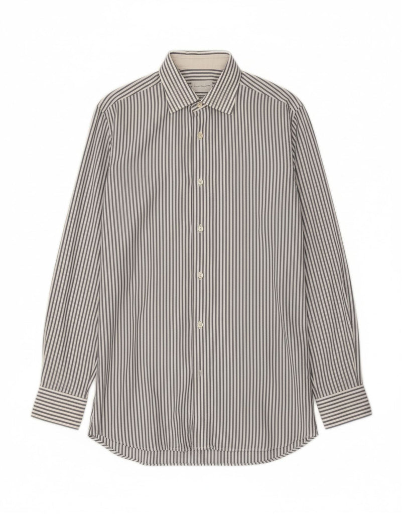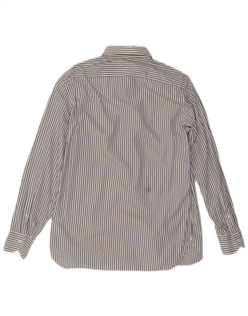 ERMENEGILDO ZEGNA Mens Slim Fit Shirt Medium Blue Striped Cotton