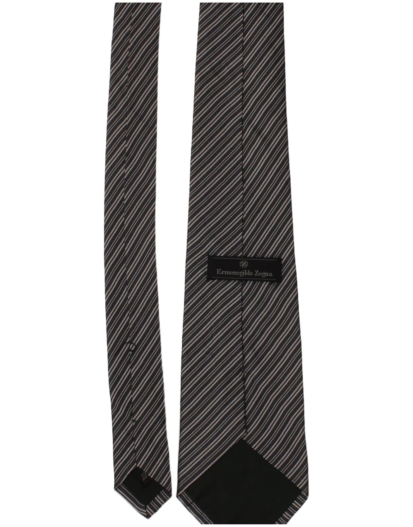 ERMENEGILDO ZEGNA Mens Tie One Size Black Striped Silk Classic