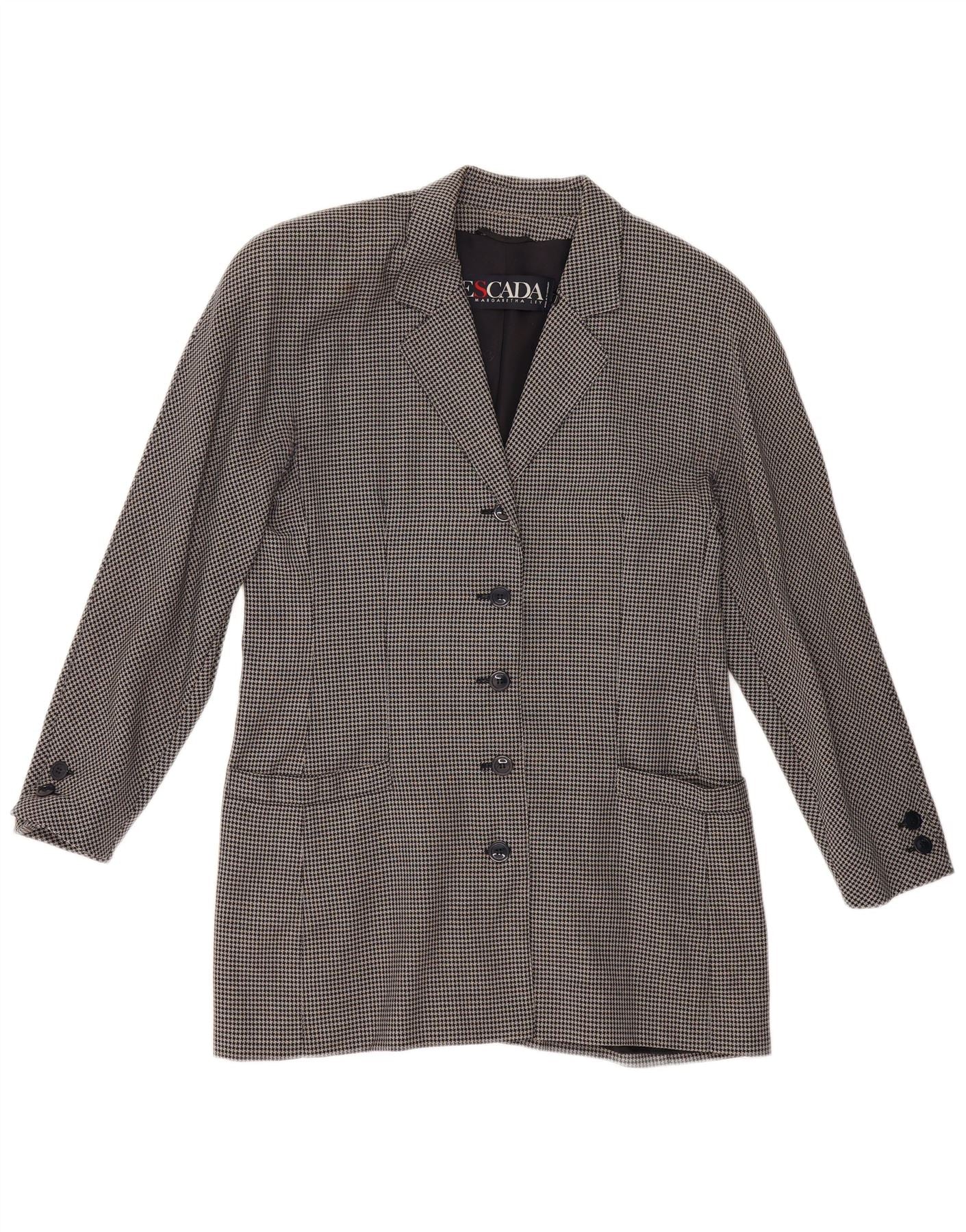 ESCADA Womens 5 Button Blazer Jacket EU 42 Large Navy Blue Houndstooth