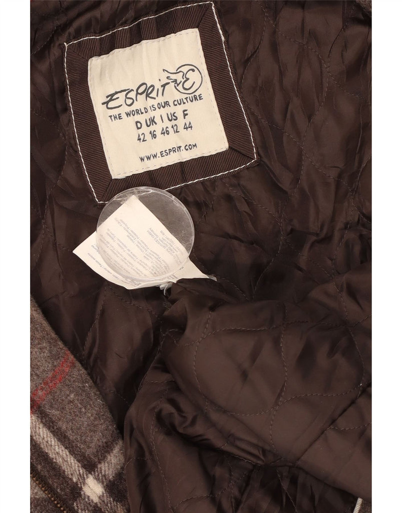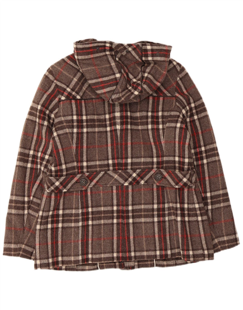 ESPRIT Womens Hooded Duffle Coat UK 16 Large Brown Plaid Wool