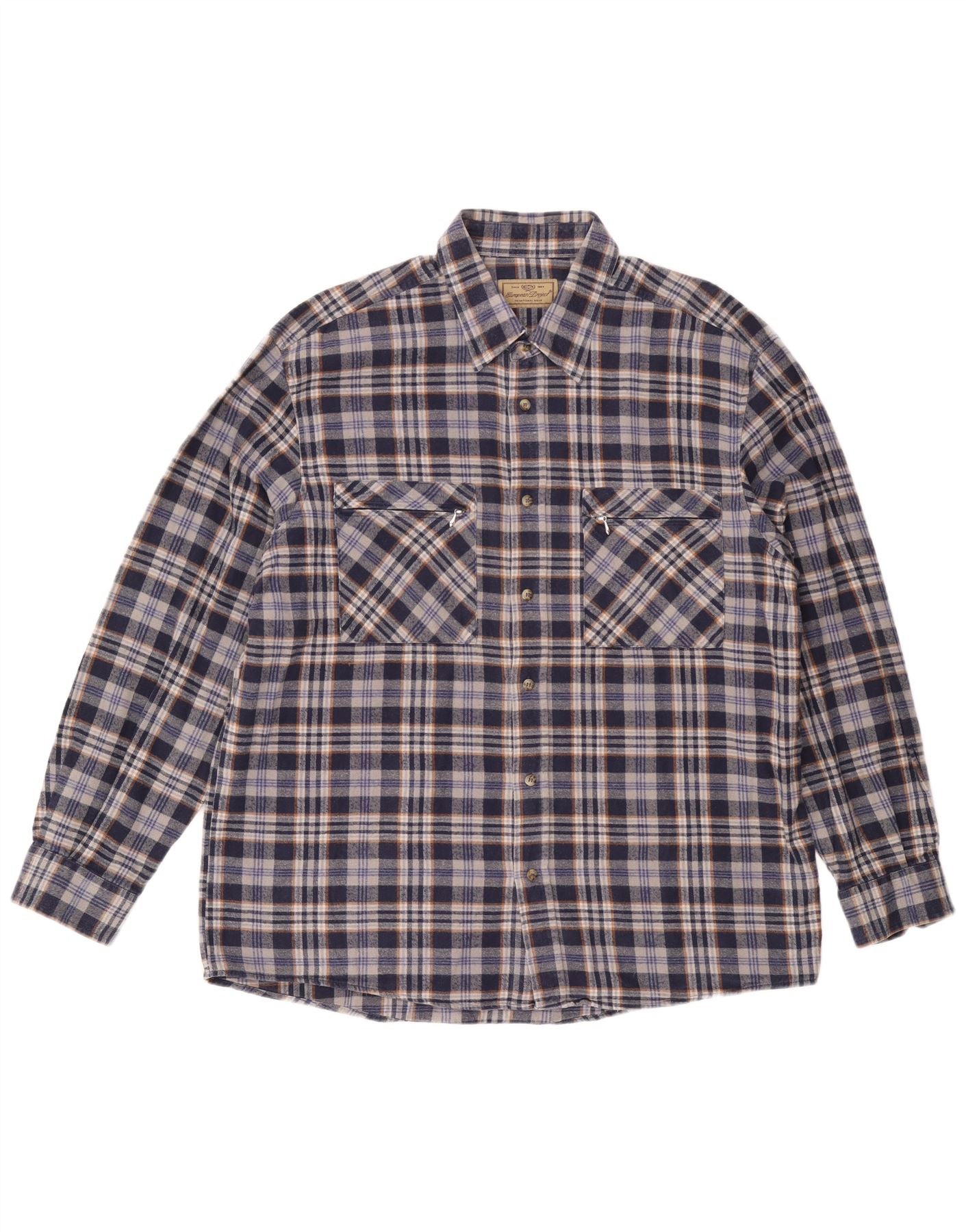 EUROPEAN PROJECT Mens Flannel Shirt XL Navy Blue Check Cotton