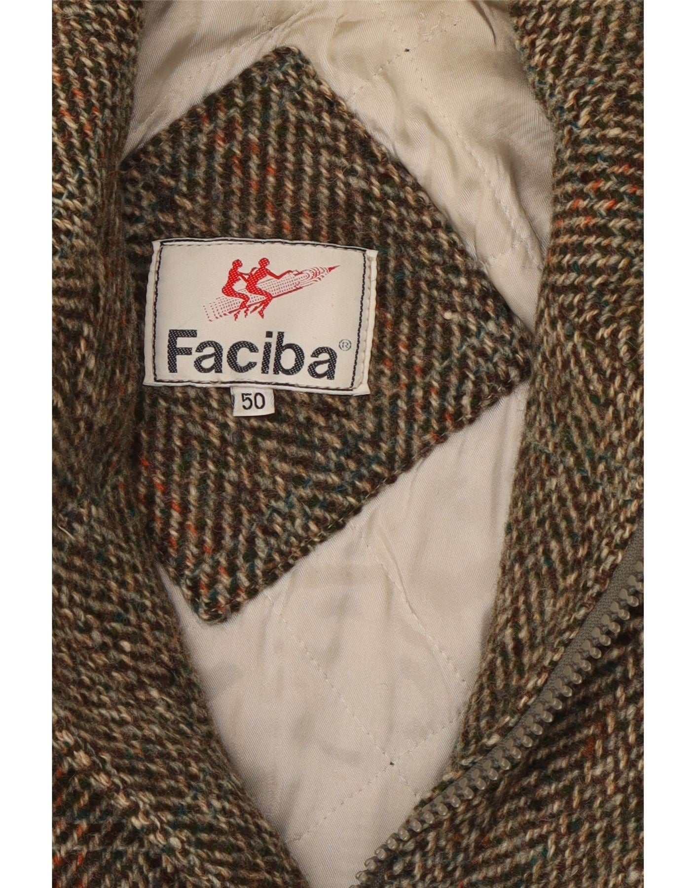 FACIBA Mens Overcoat IT 50 Large Brown Herringbone Wool