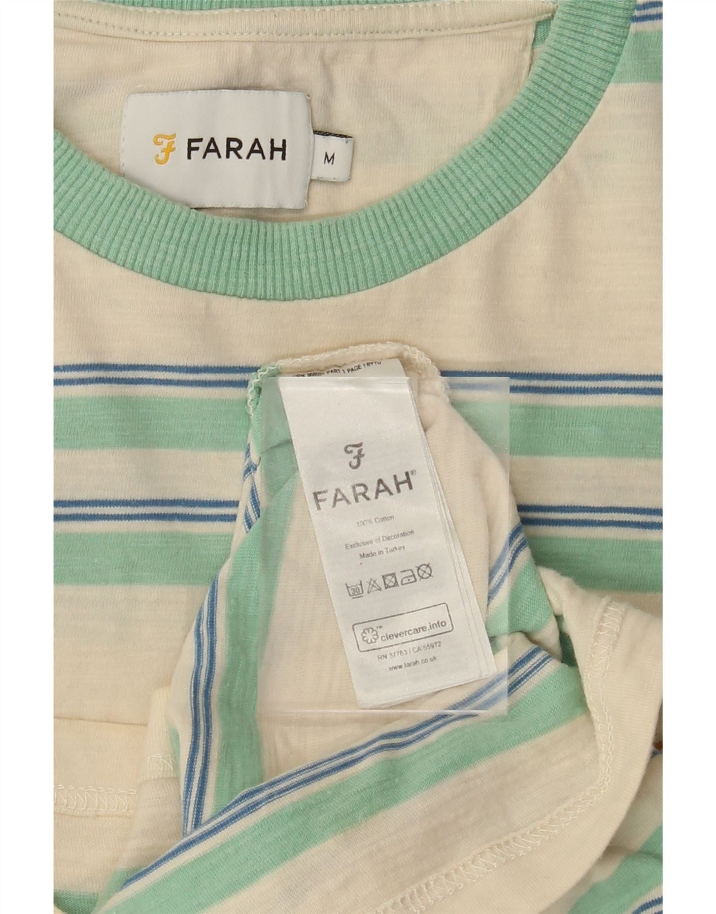 FARAH Mens T-Shirt Top Medium Off White Striped Cotton
