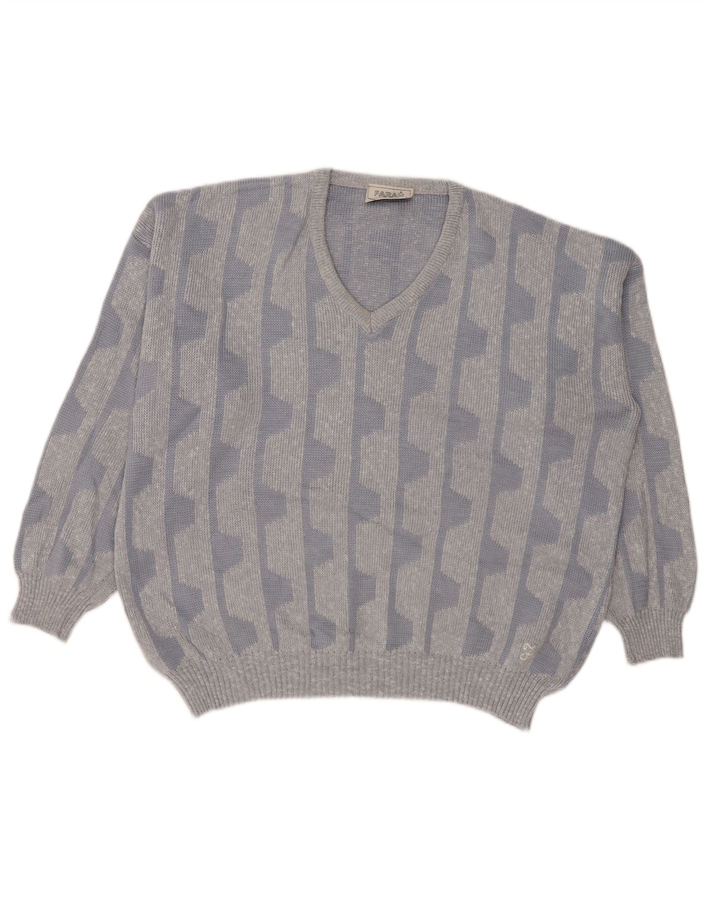 Farah Mens V-Neck Jumper Sweater UK 42 Large Blue Geometric Acrylic