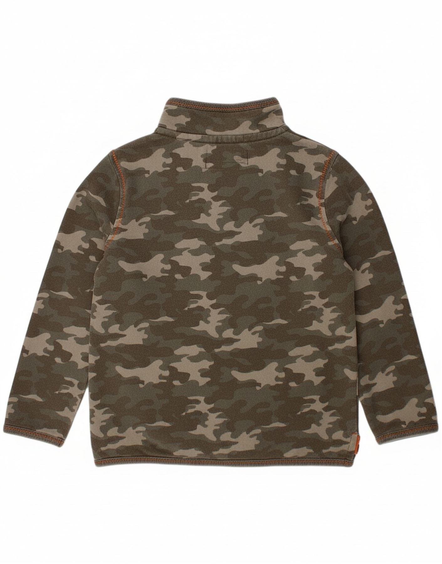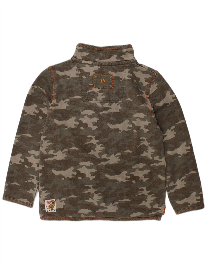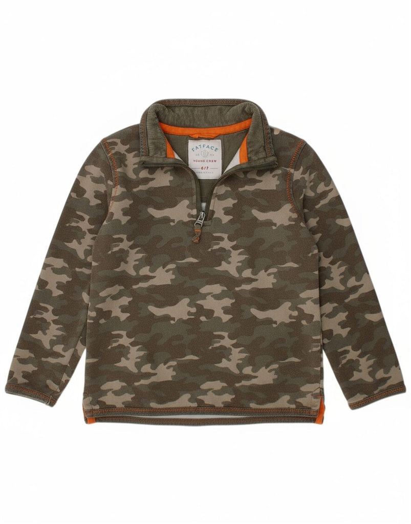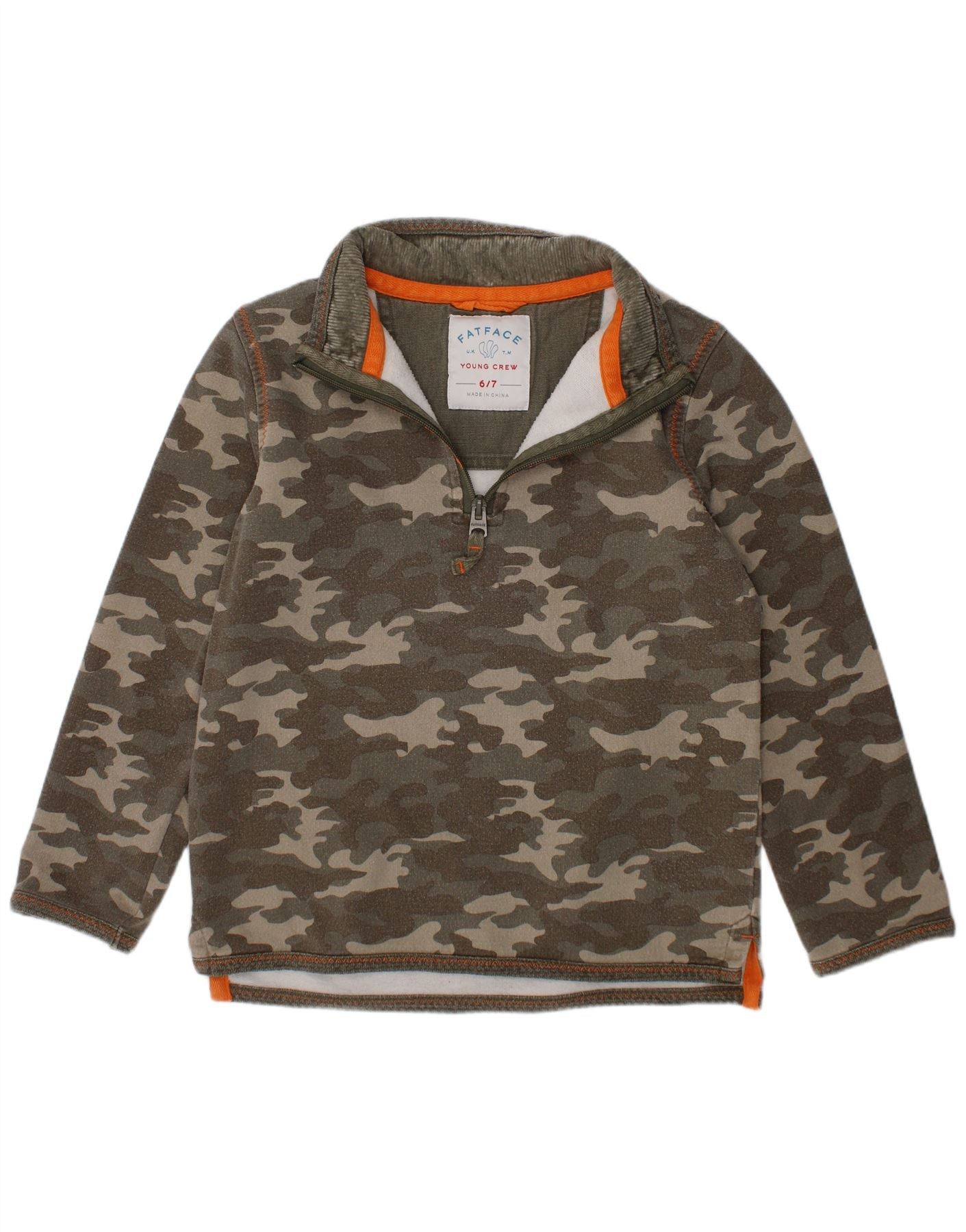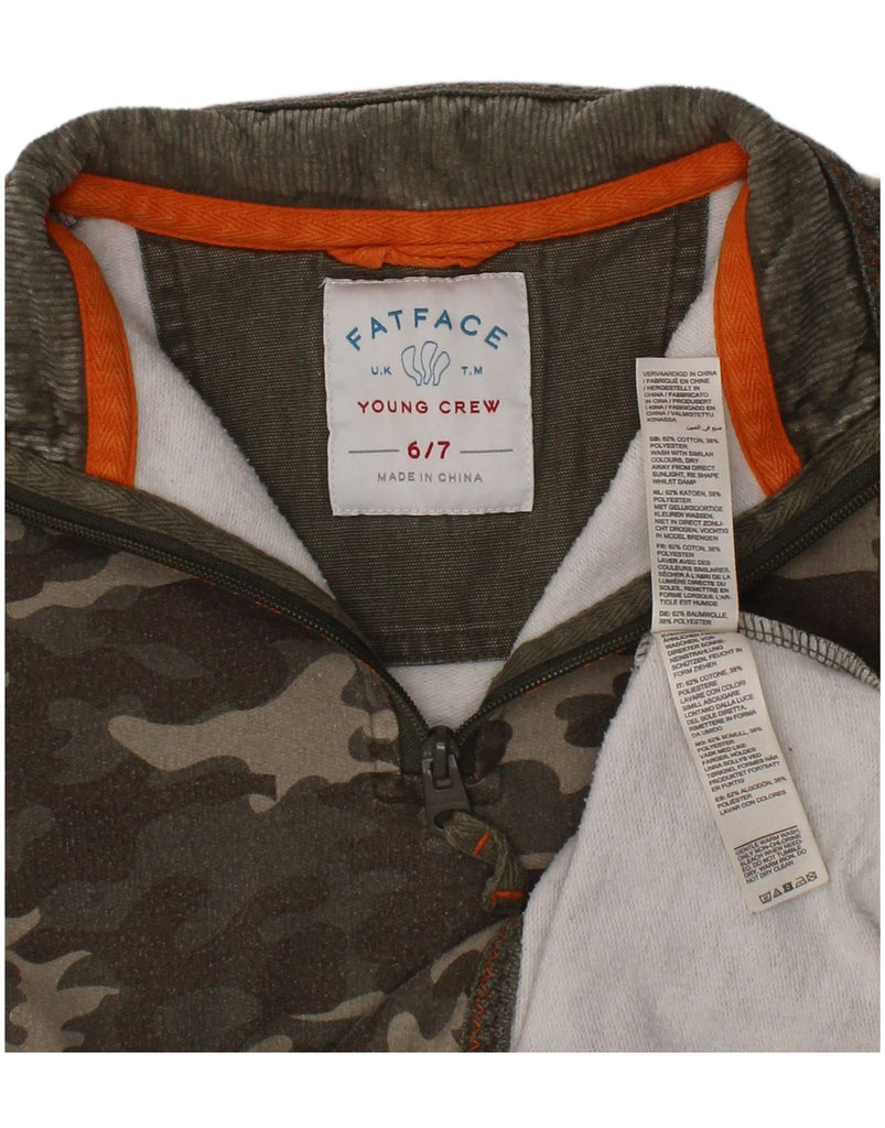 FAT FACE Boys Zip Neck Sweatshirt Jumper 6-7 Years Khaki Camouflage Cotton
