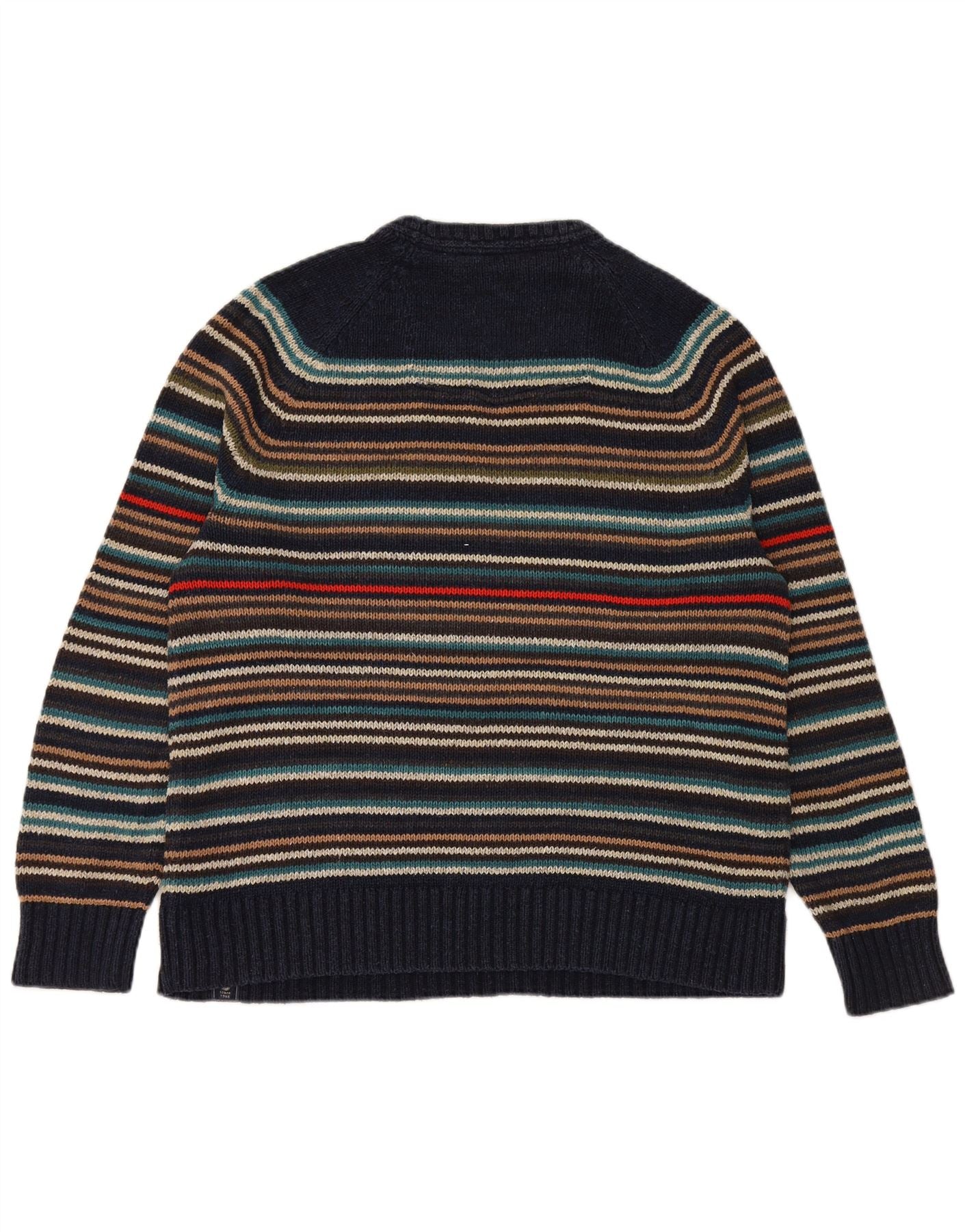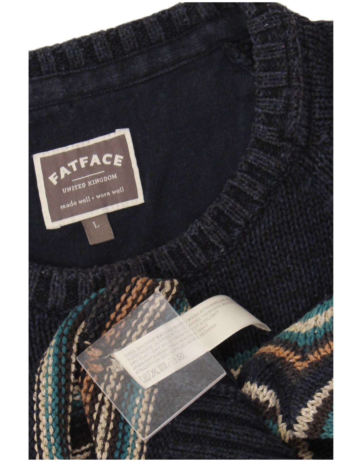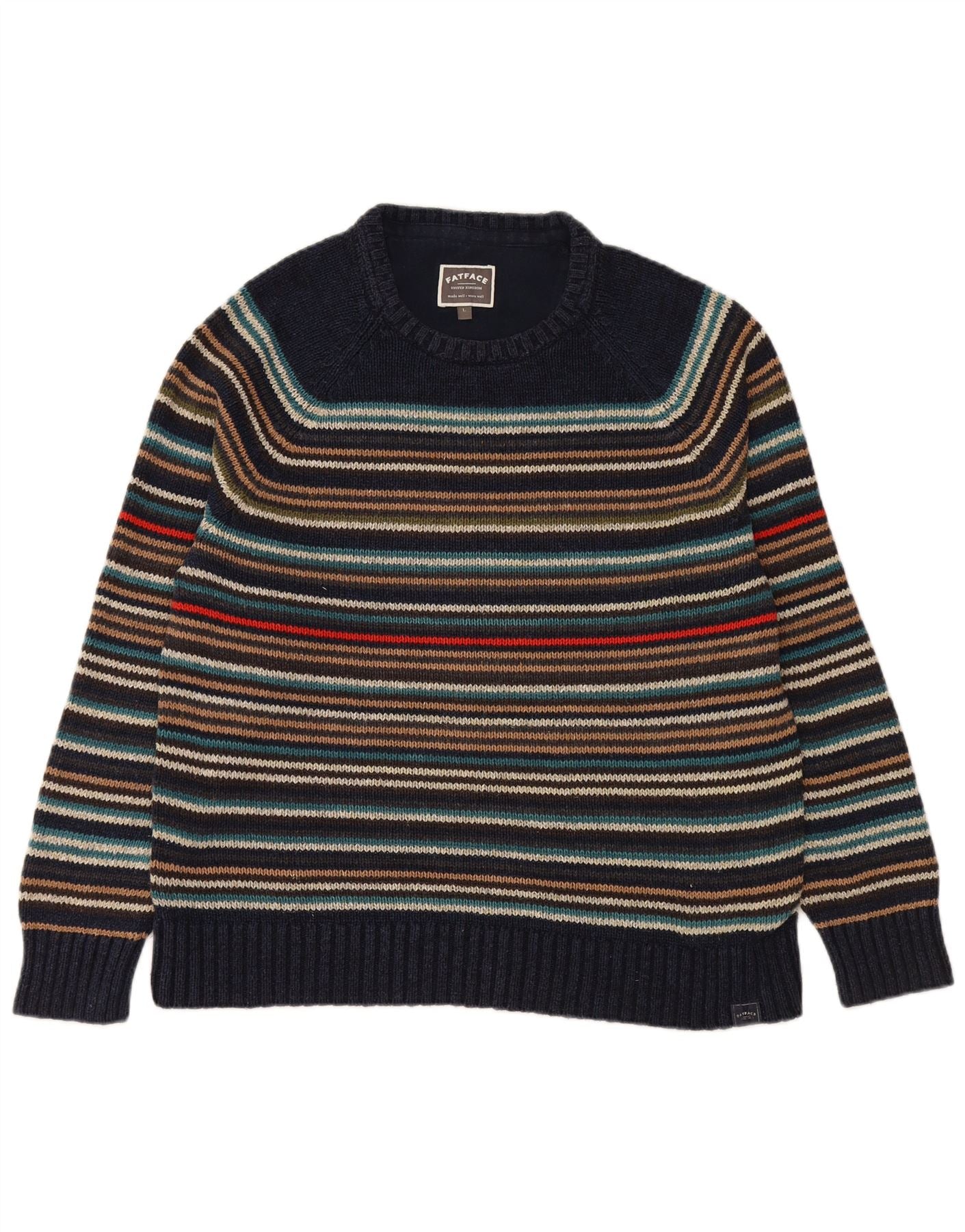 FAT FACE Mens Crew Neck Jumper Sweater Large Navy Blue Striped Cotton