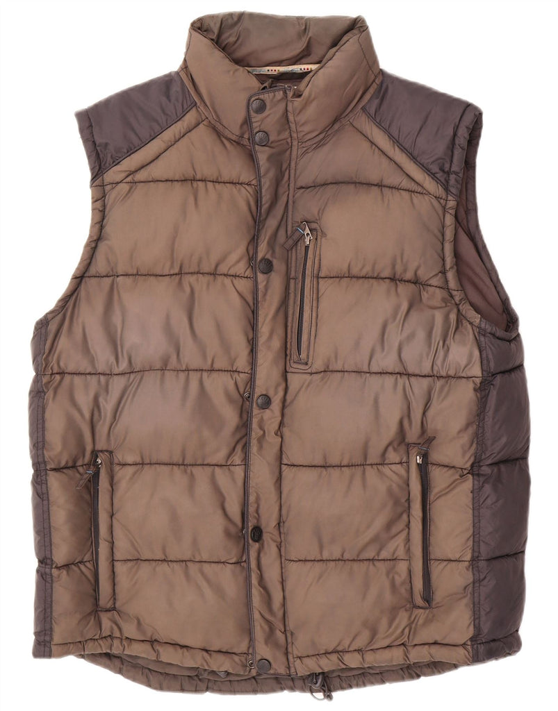 FAT FACE Mens Padded Gilet UK 40 Large Brown Colourblock Polyester
