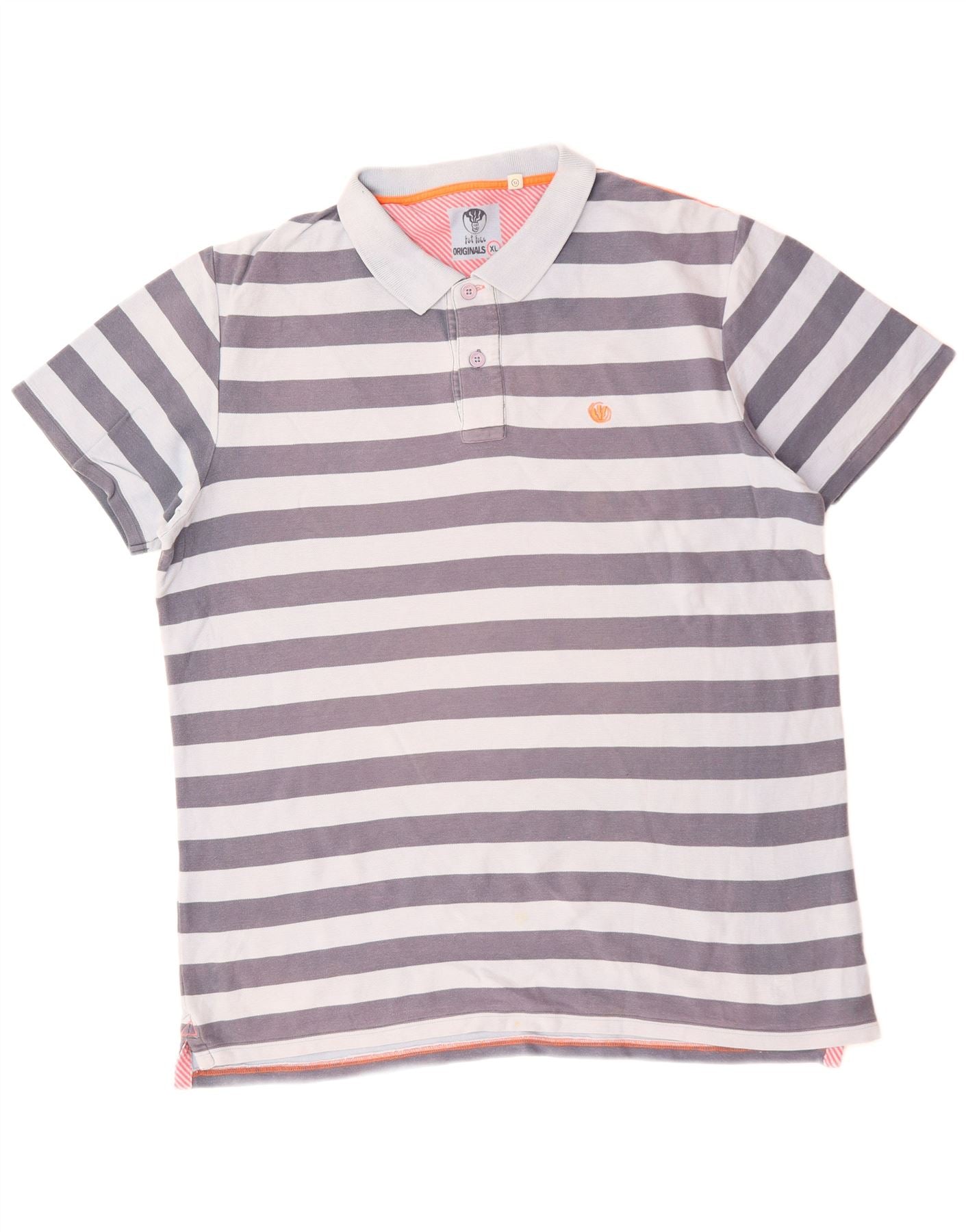- AI Description: This Fat Face mens Polo Shirt is crafted from soft jersey fabric. It features a classic striped pattern in grey and light grey. The collared neckline and button-up placket offer a smart, clean-cut appeal. Short sleeves and a regular fit ensure comfortable wear. An embroidered logo adds a subtle branded accent. This versatile top is perfect for a relaxed yet refined casual look.