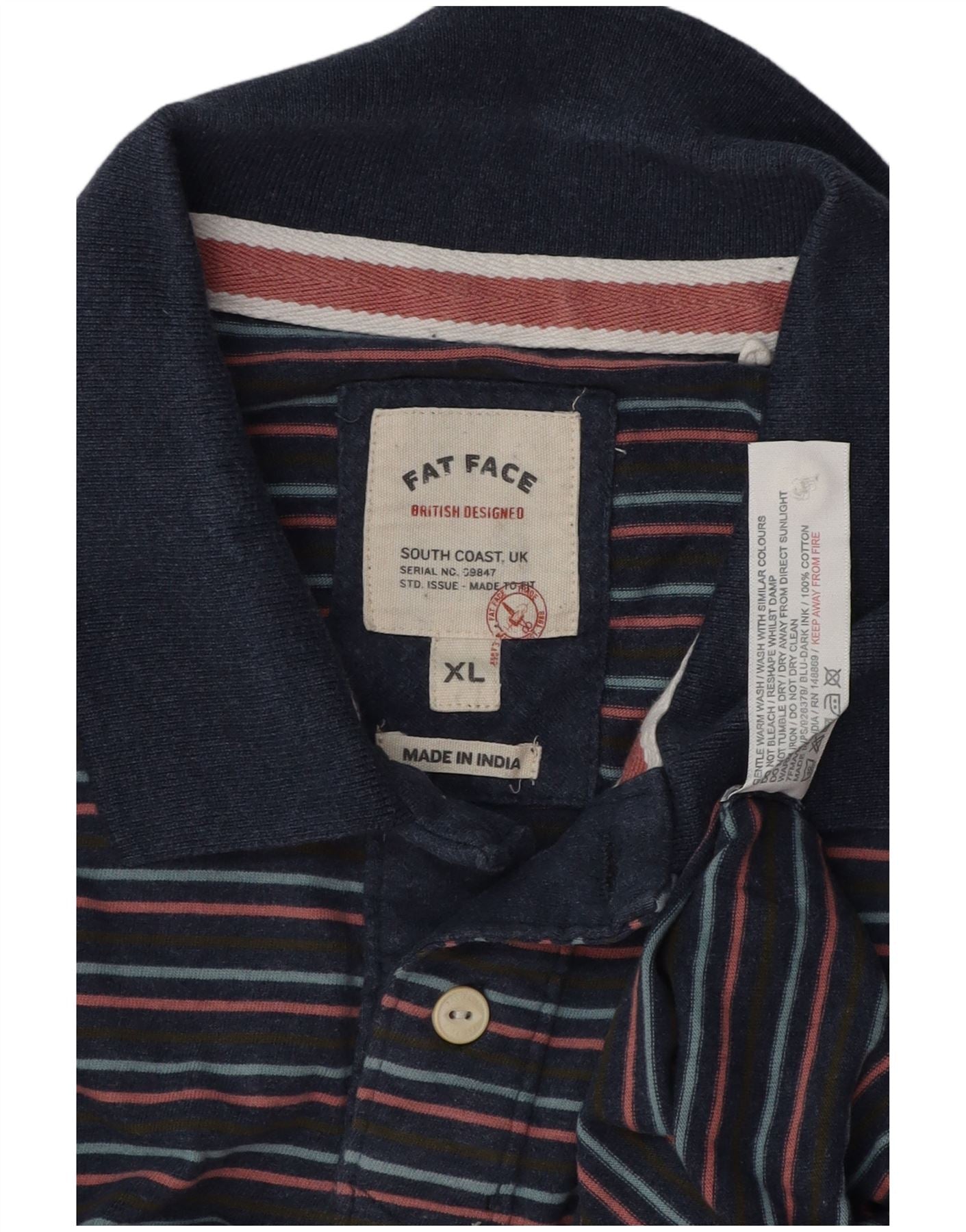 FAT FACE Mens Polo Shirt XL Navy Blue Striped Cotton