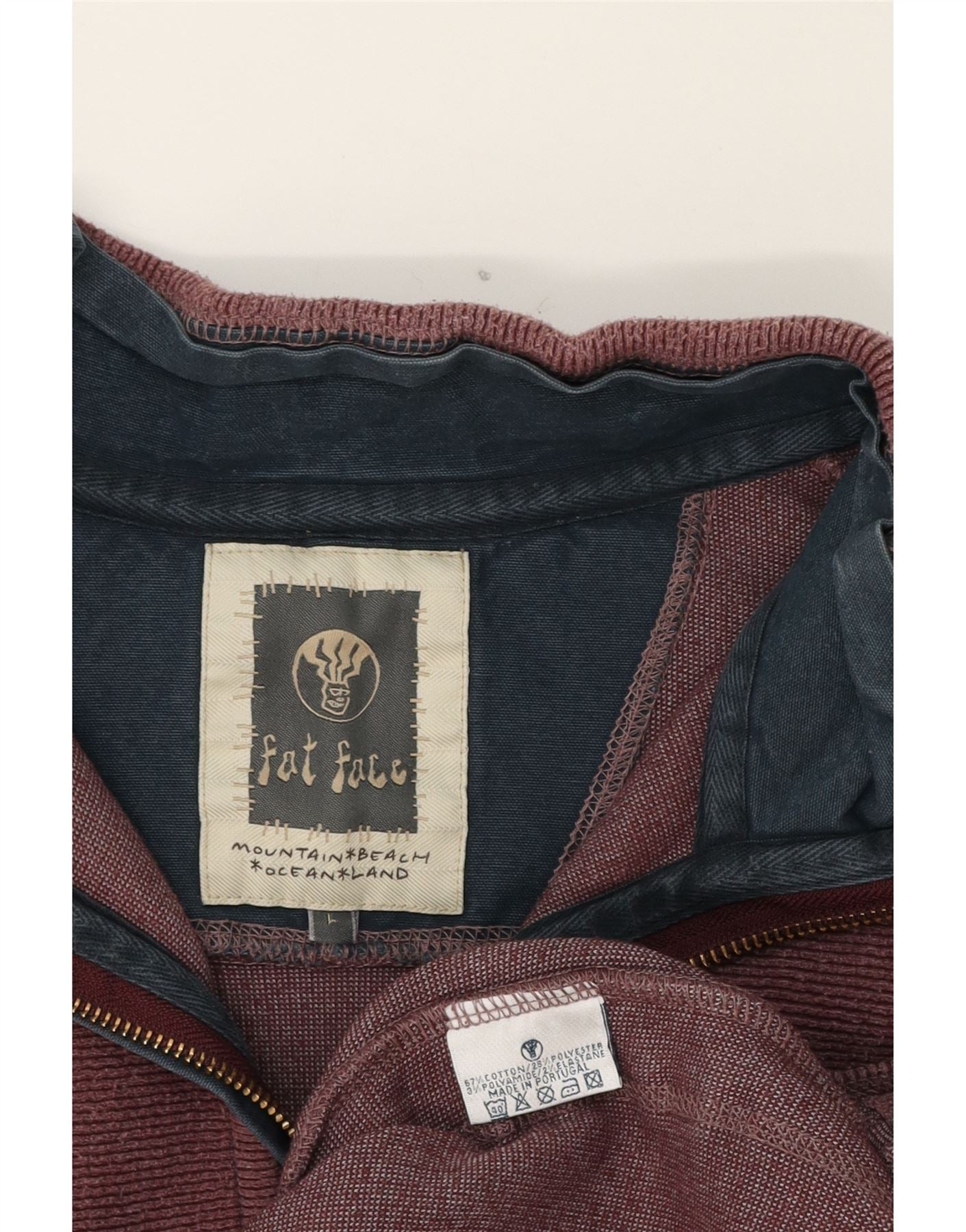 - AI Description: This Fat Face men's zip neck jumper is crafted in Portugal from a comfortable knit of 82% cotton and 18% polyester. The burgundy, long-sleeved sweater features a collared neckline, a regular fit, and a 1/4 zip closure with a logo accent. This classic style garment is pre-owned, in excellent condition and is machine washable at 30 degrees. Size M.