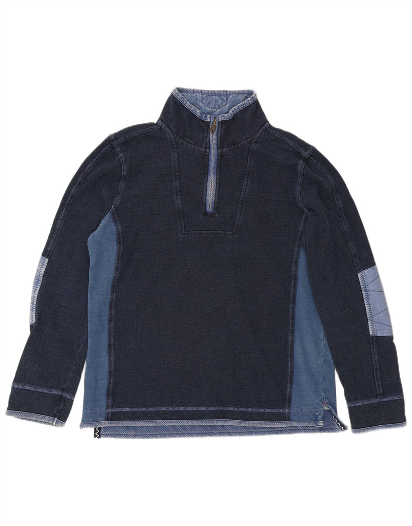 FAT FACE Mens Zip Neck Sweatshirt Jumper Medium Navy Blue Colourblock