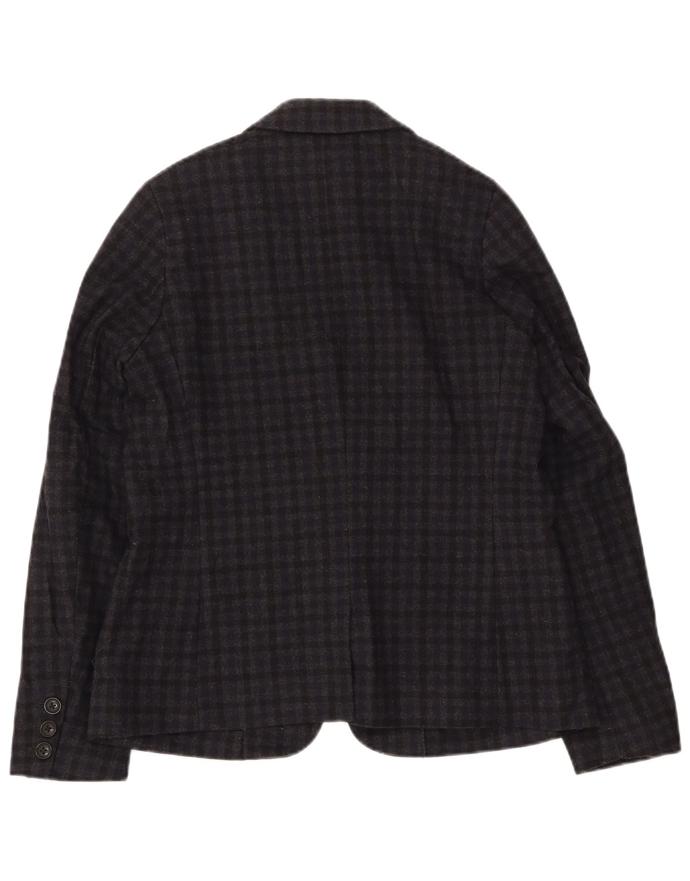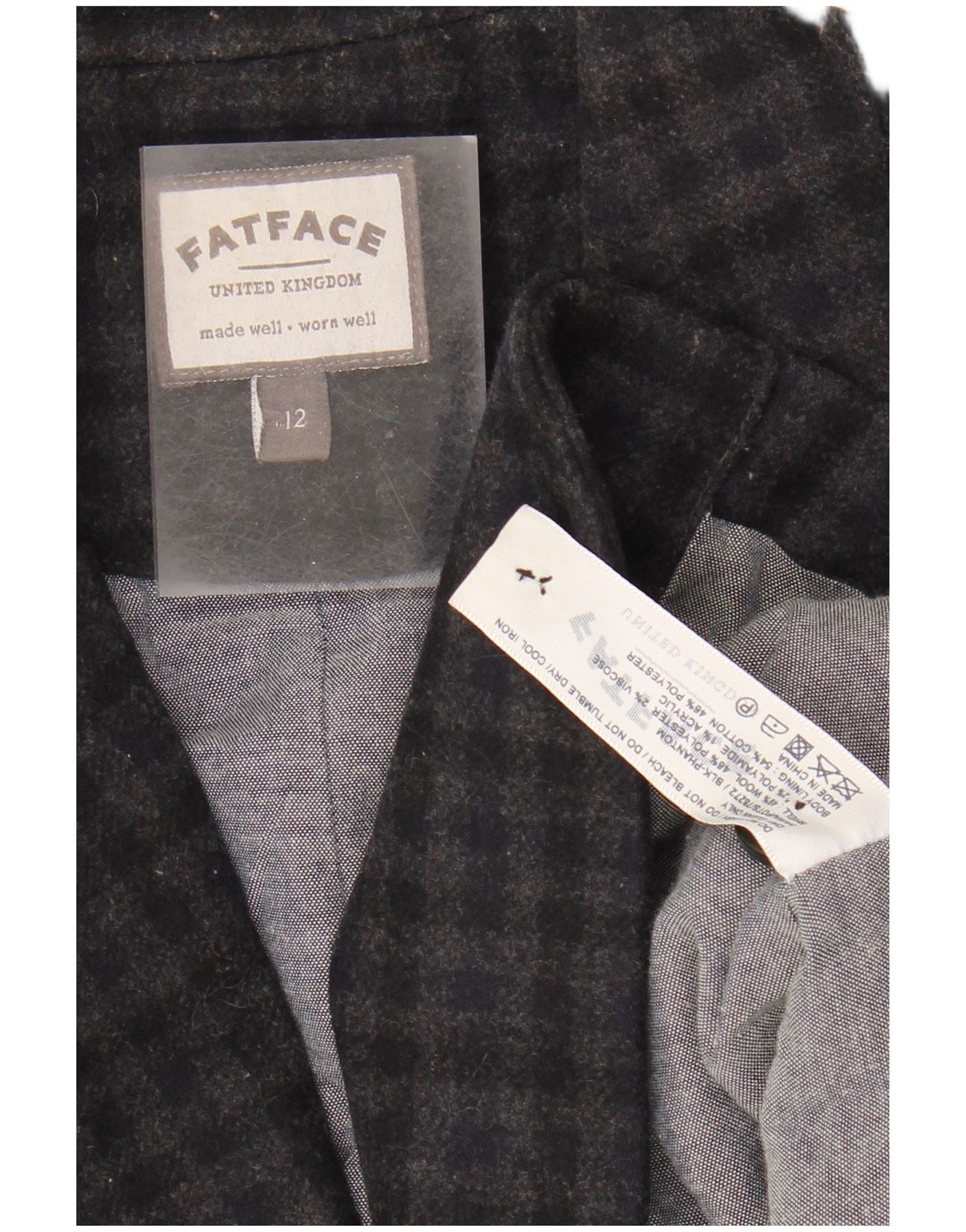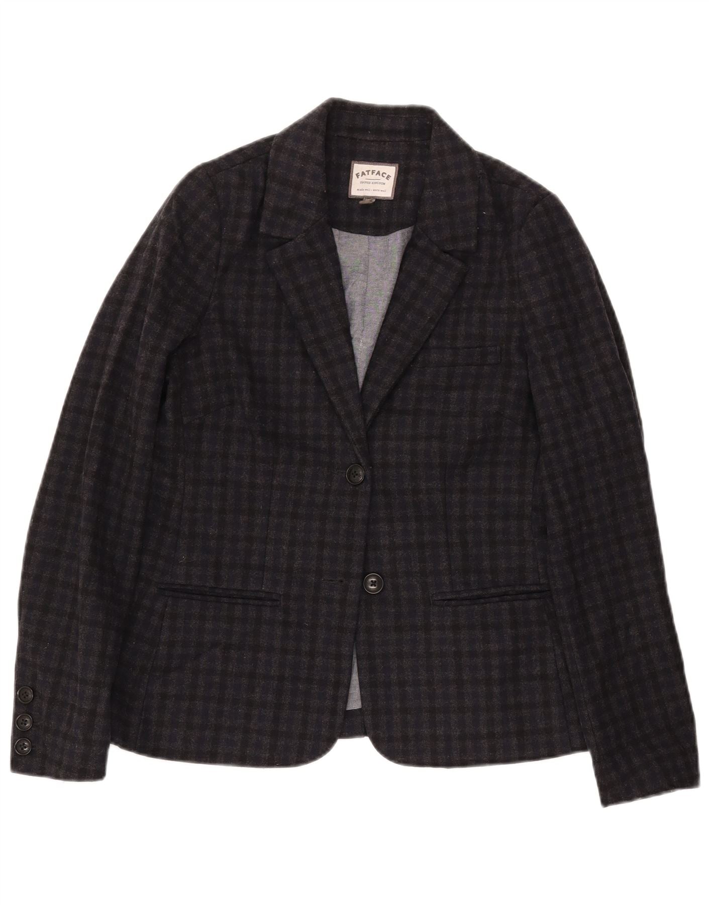 FAT FACE Womens 2 Button Blazer Jacket UK 12 Medium Navy Blue Gingham Wool
