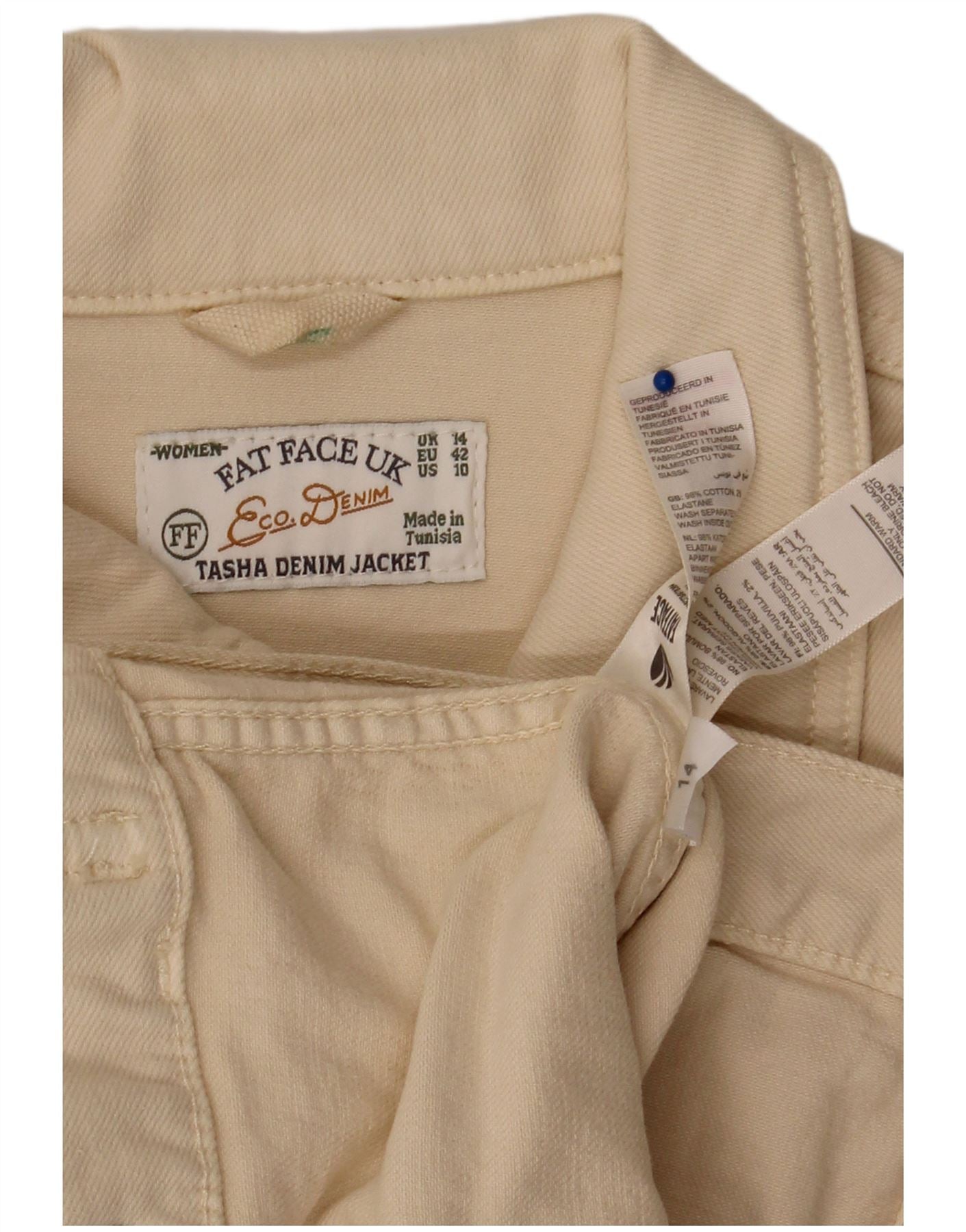 FAT FACE Womens Denim Jacket UK 14 Large Beige Cotton