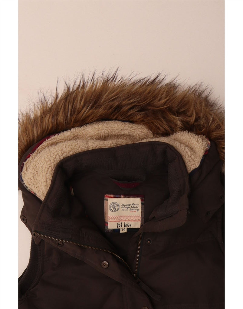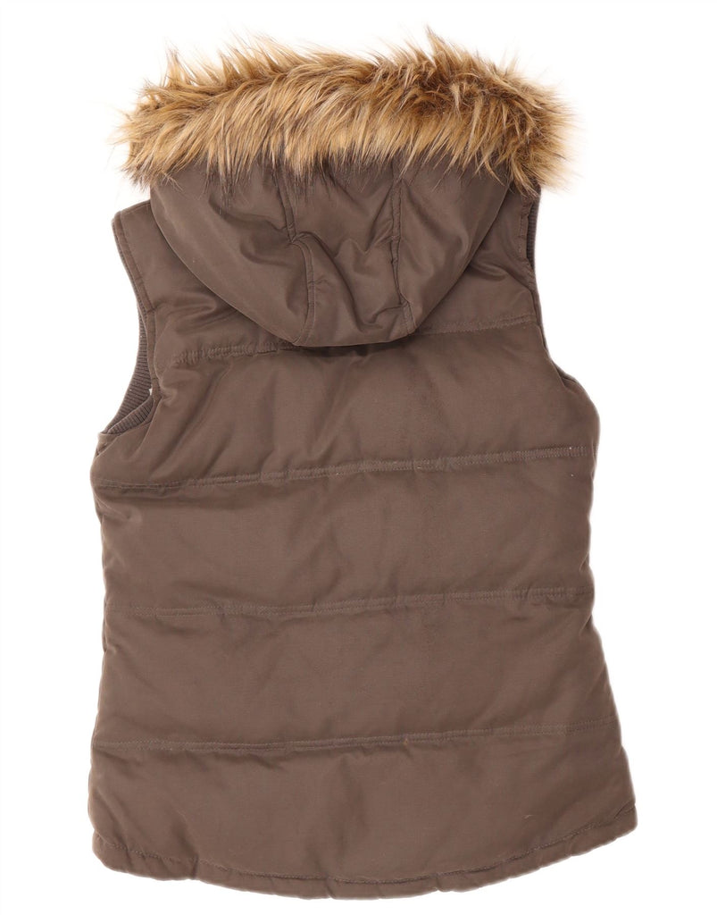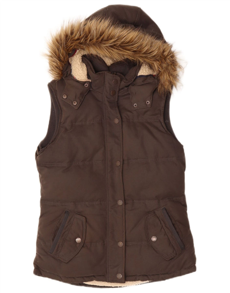 FAT FACE Womens Hooded Padded Gilet UK 10 Small Brown Polyester