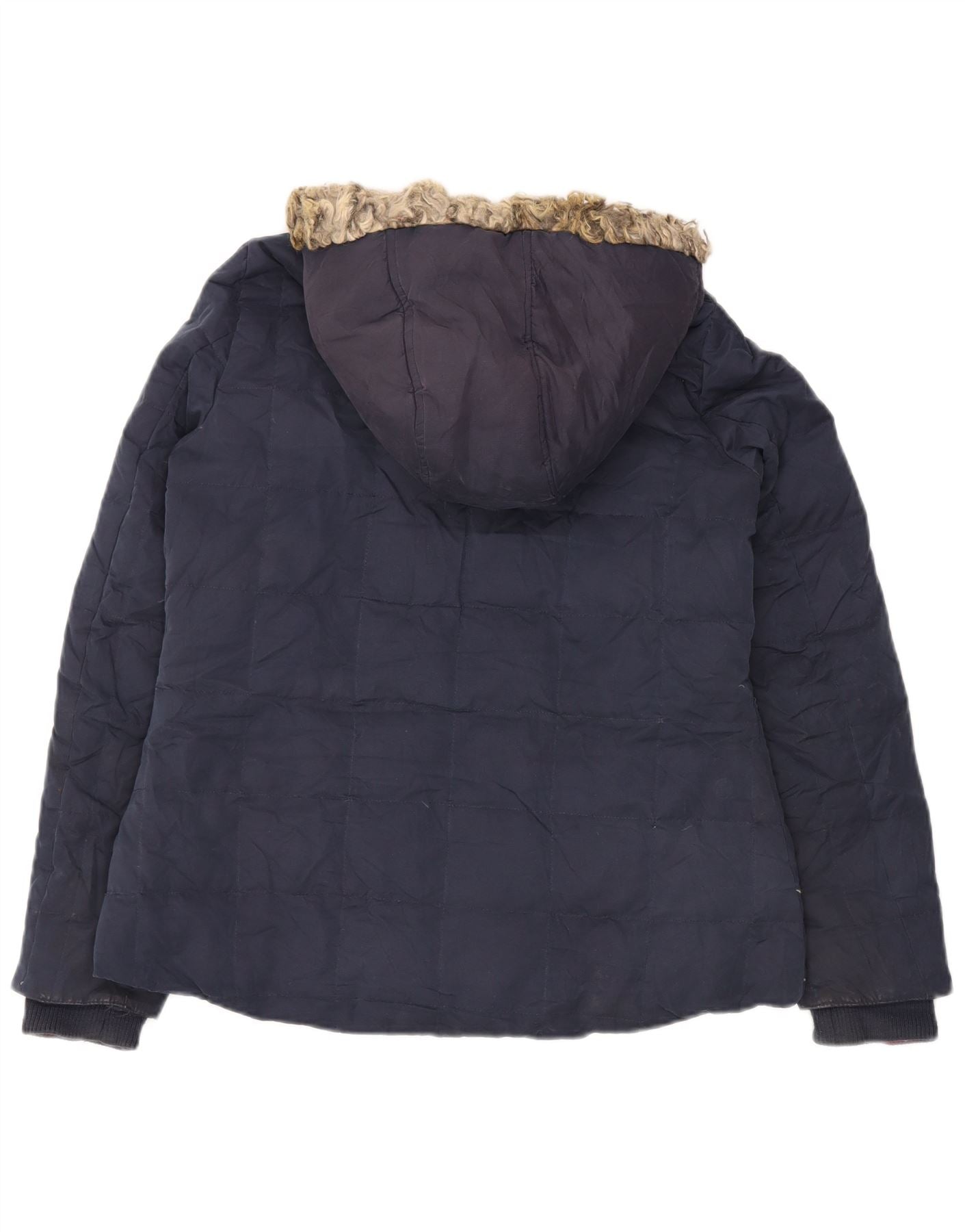 WHITE STUFF Womens Hooded Duffle Jacket UK 14 Large Navy Blue Cotton