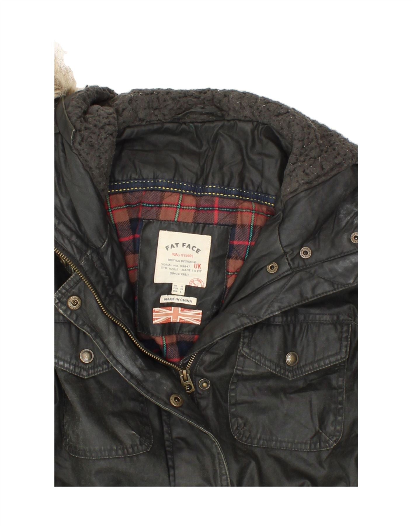 FAT FACE Womens Hooded Waxed Cotton Jacket UK 10 Small Black Cotton