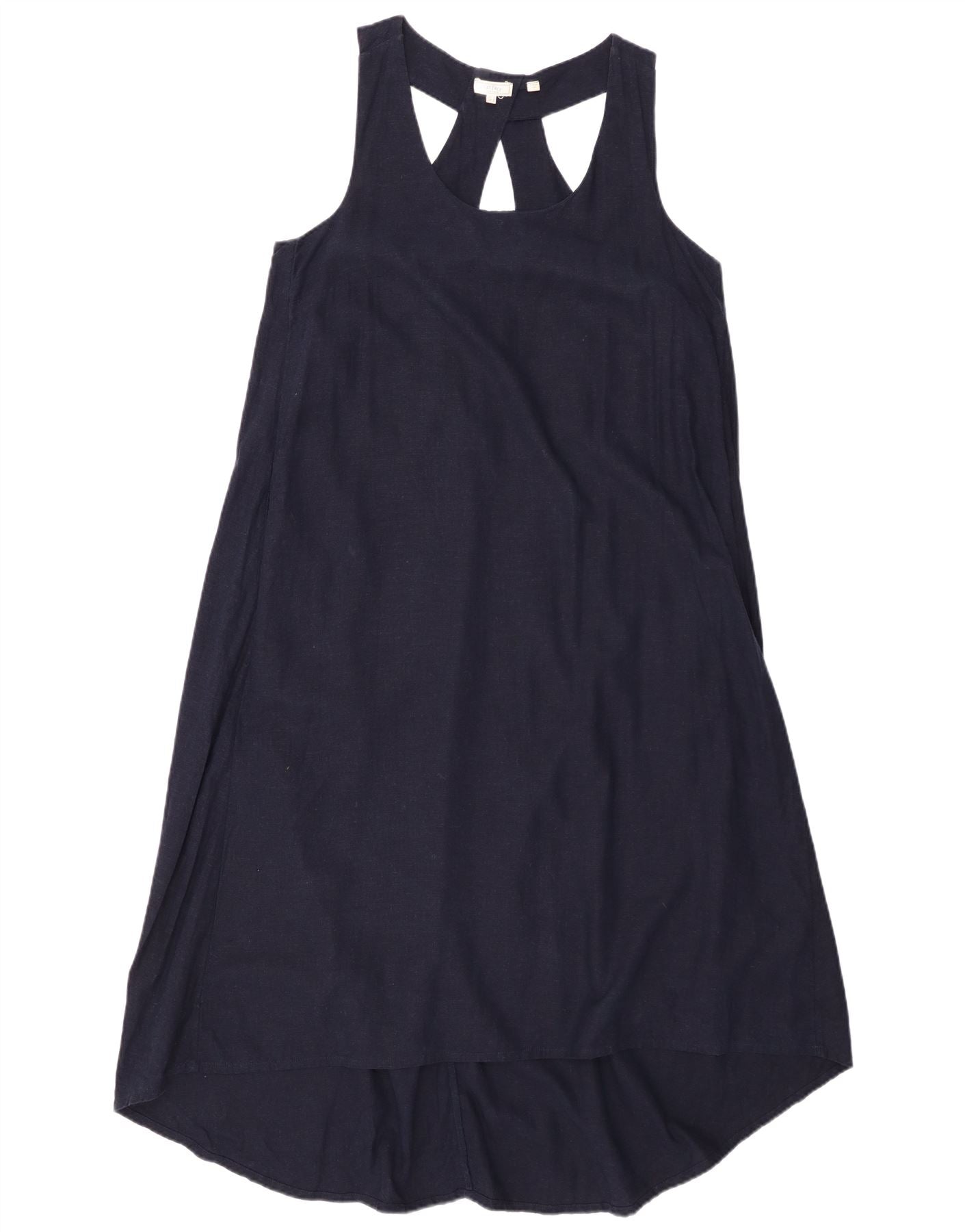 FAT FACE Womens Sleeveless A-Line Dress UK 12 Medium Navy Blue Linen