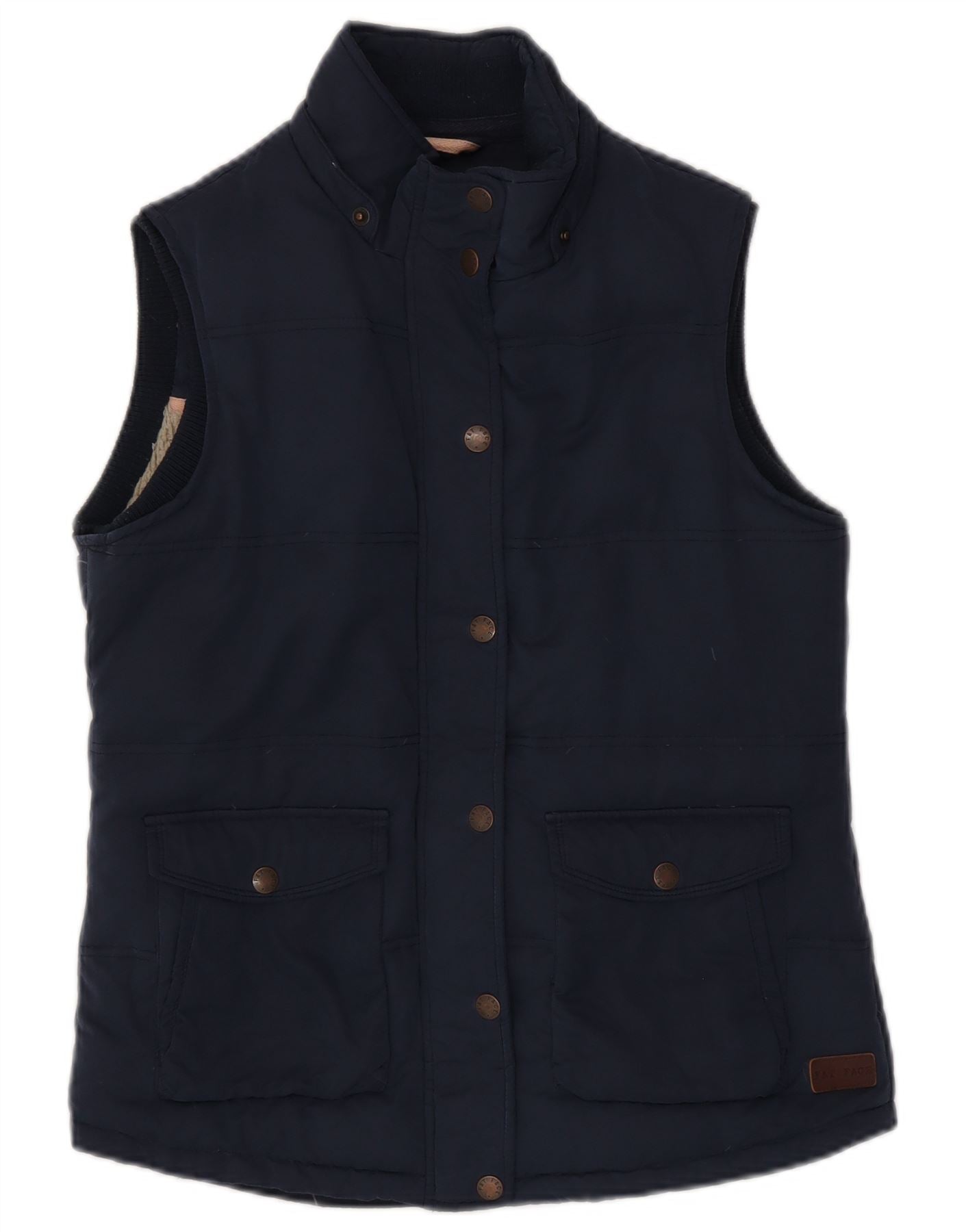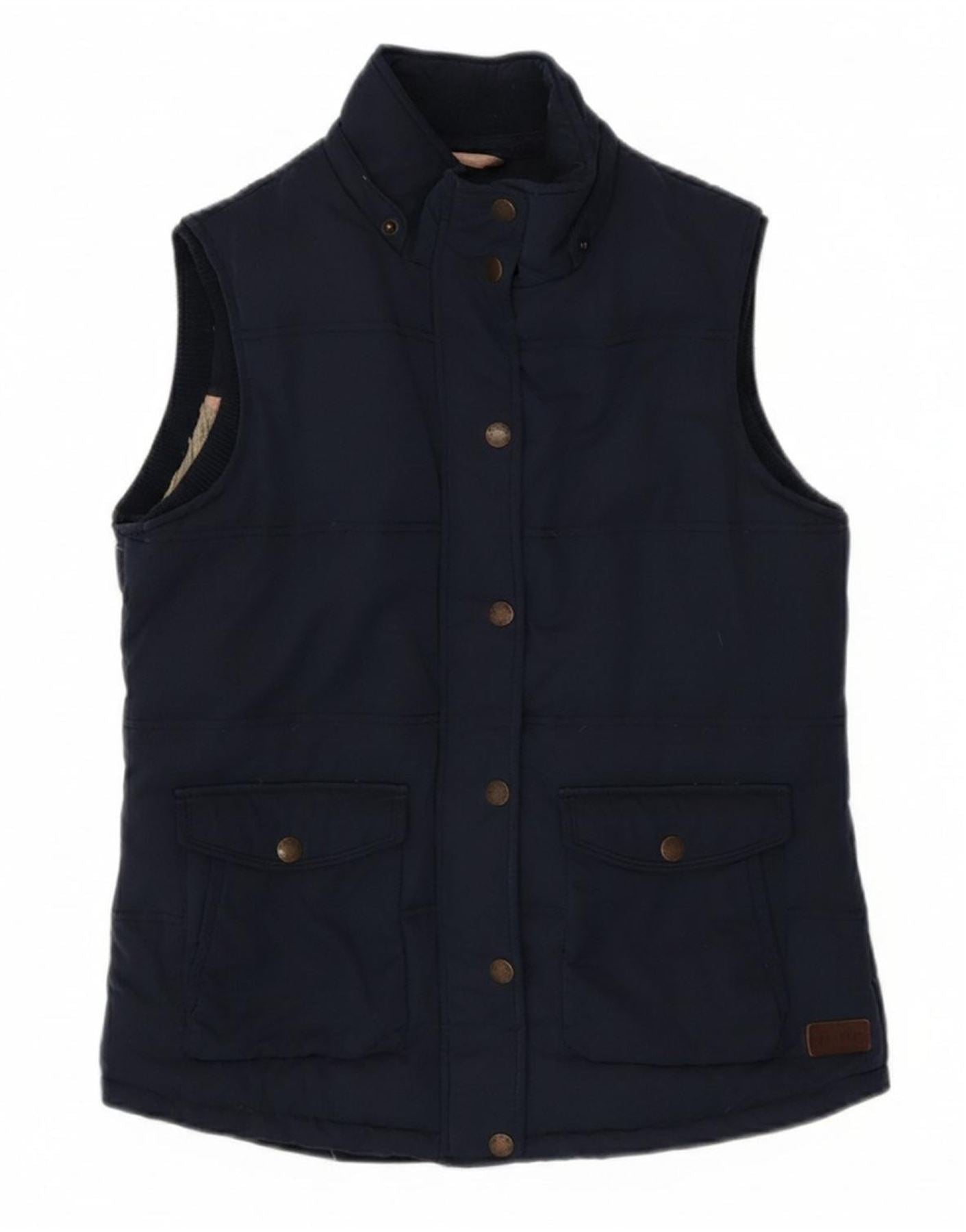 FAT FACE Womens Sleeveless Sherpa Jacket UK 10 Small Navy Blue Polyester