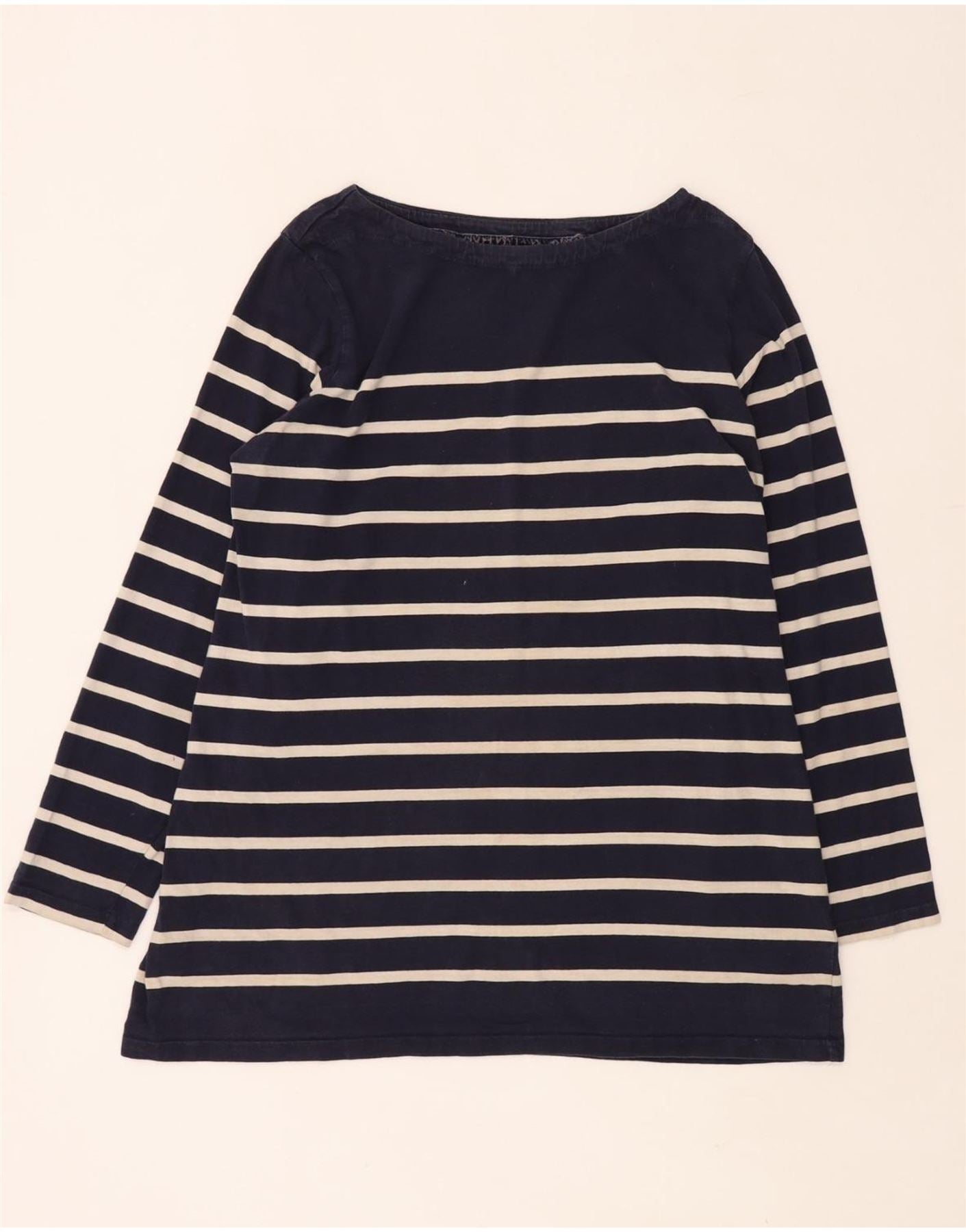 FAT FACE Womens Top Long Sleeve UK 18 XL Navy Blue Striped Cotton