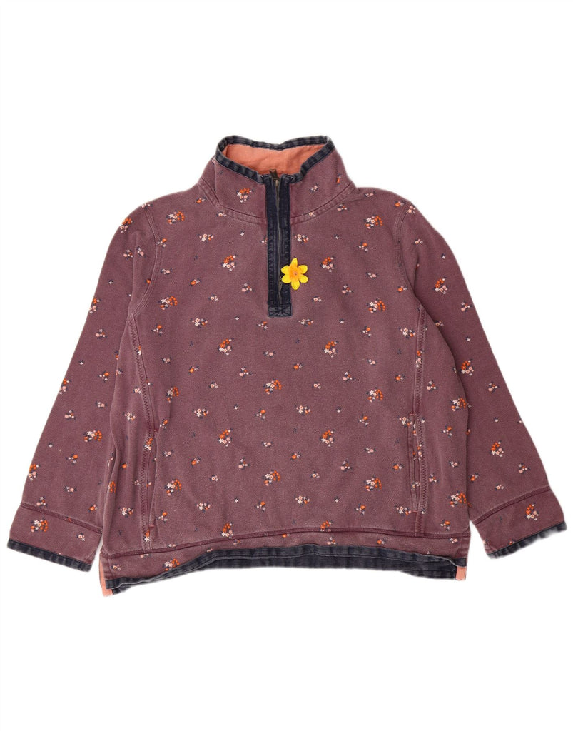 FAT FACE Womens Zip Neck Sweatshirt Jumper UK 18 XL Purple Floral Cotton