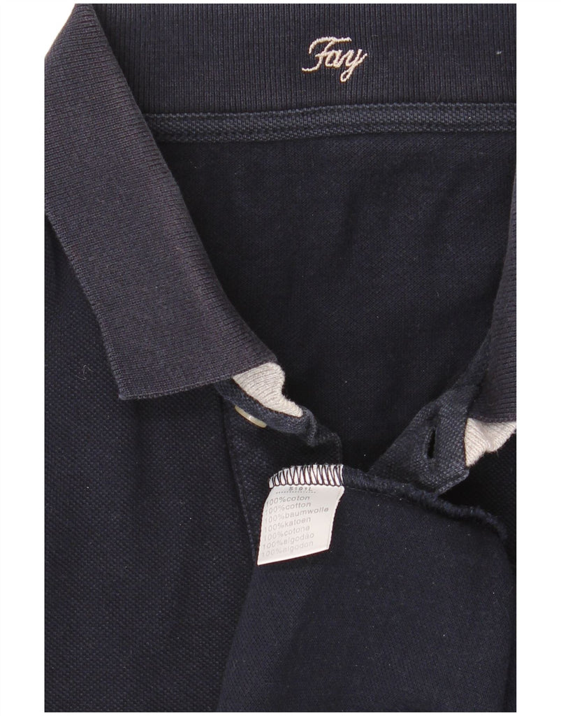 FAY Mens Tall Long Sleeve Rugby Polo Shirt Large Navy Blue Cotton