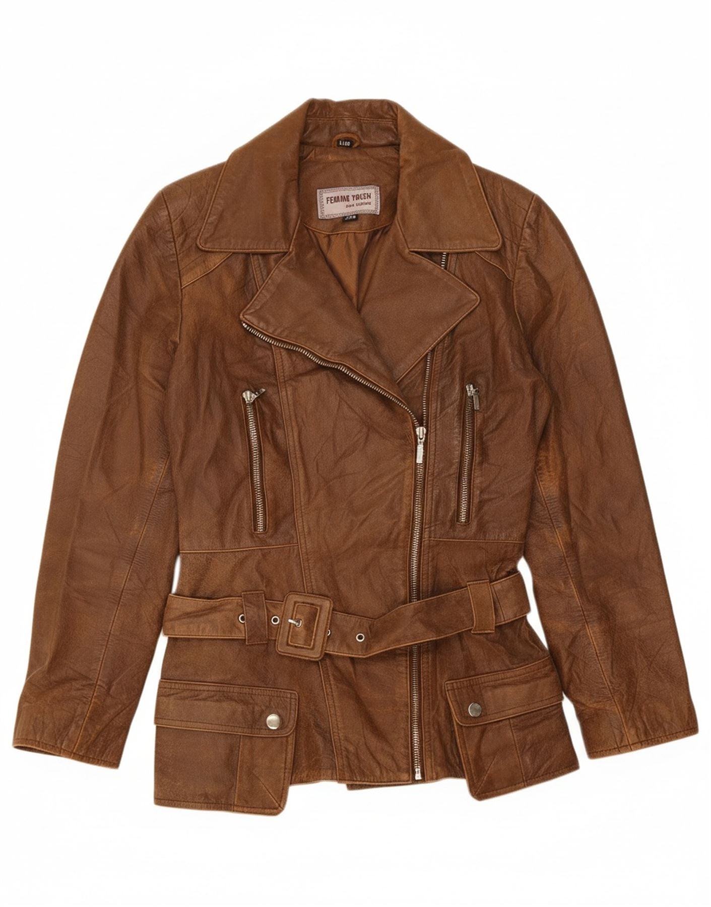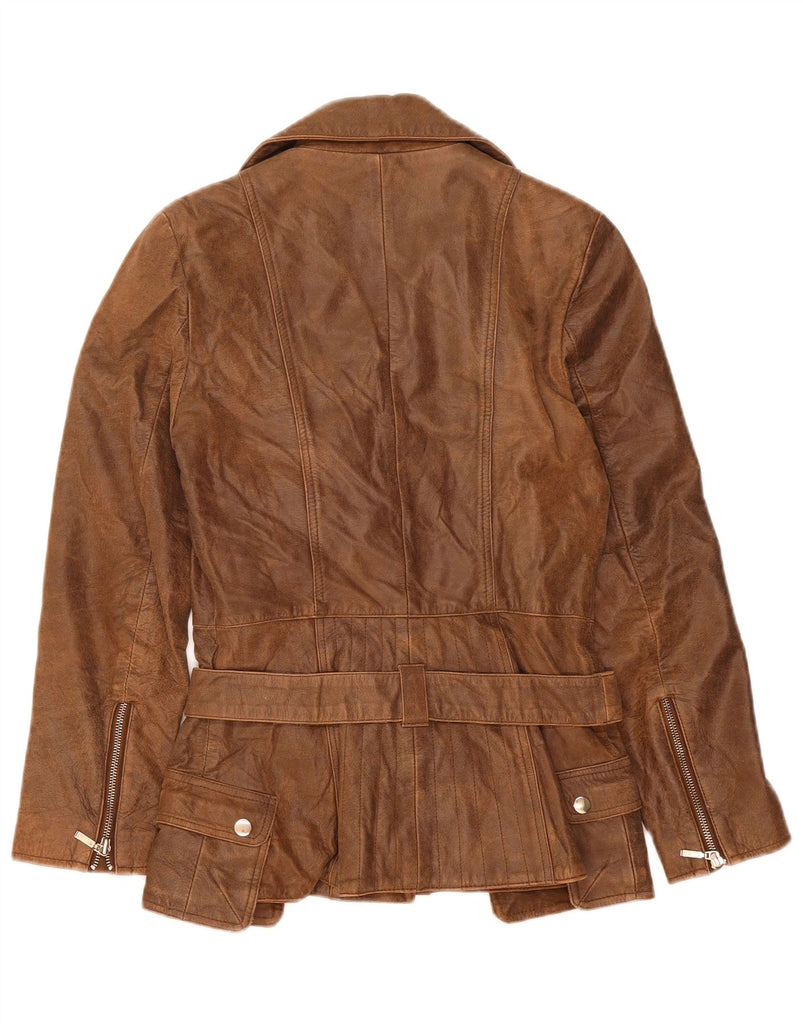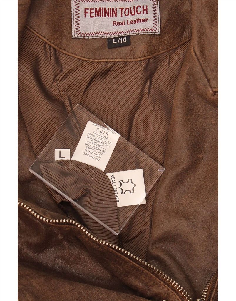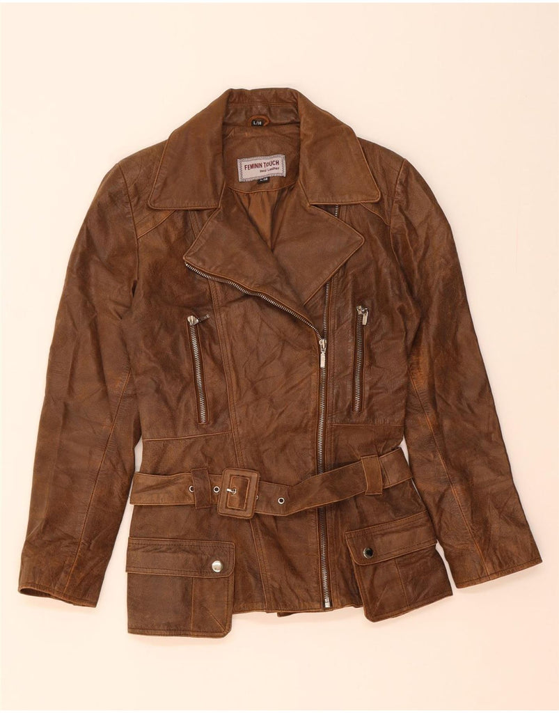 FEMININ TOUCH Womens Leather Biker Jacket UK 14 Large Brown Leather