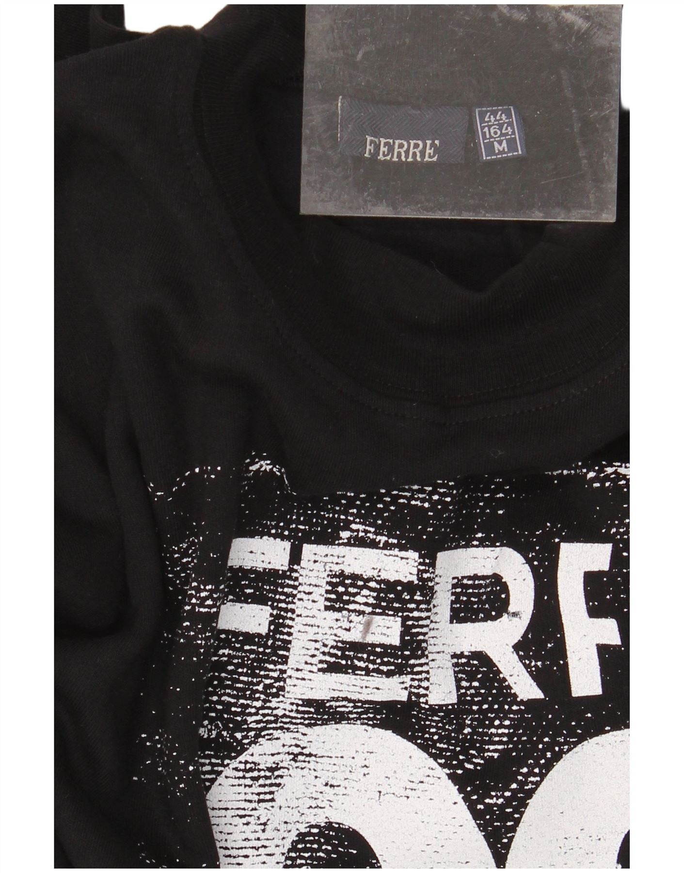FERRE Womens Graphic Top Long Sleeve IT 44 Medium Black Cotton