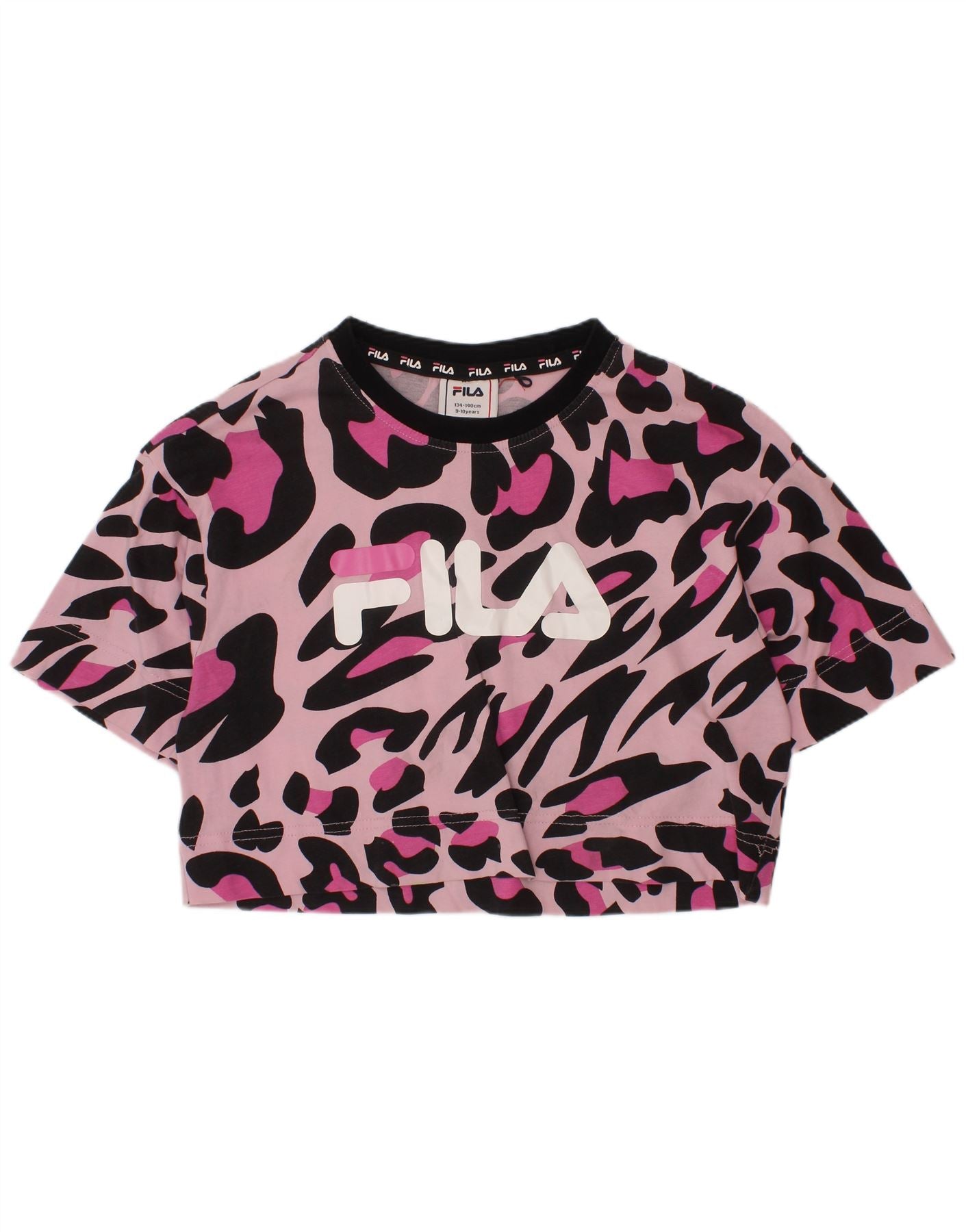 FILA Girls Crop Graphic T-Shirt Top 9-10 Years Pink Animal Print Cotton