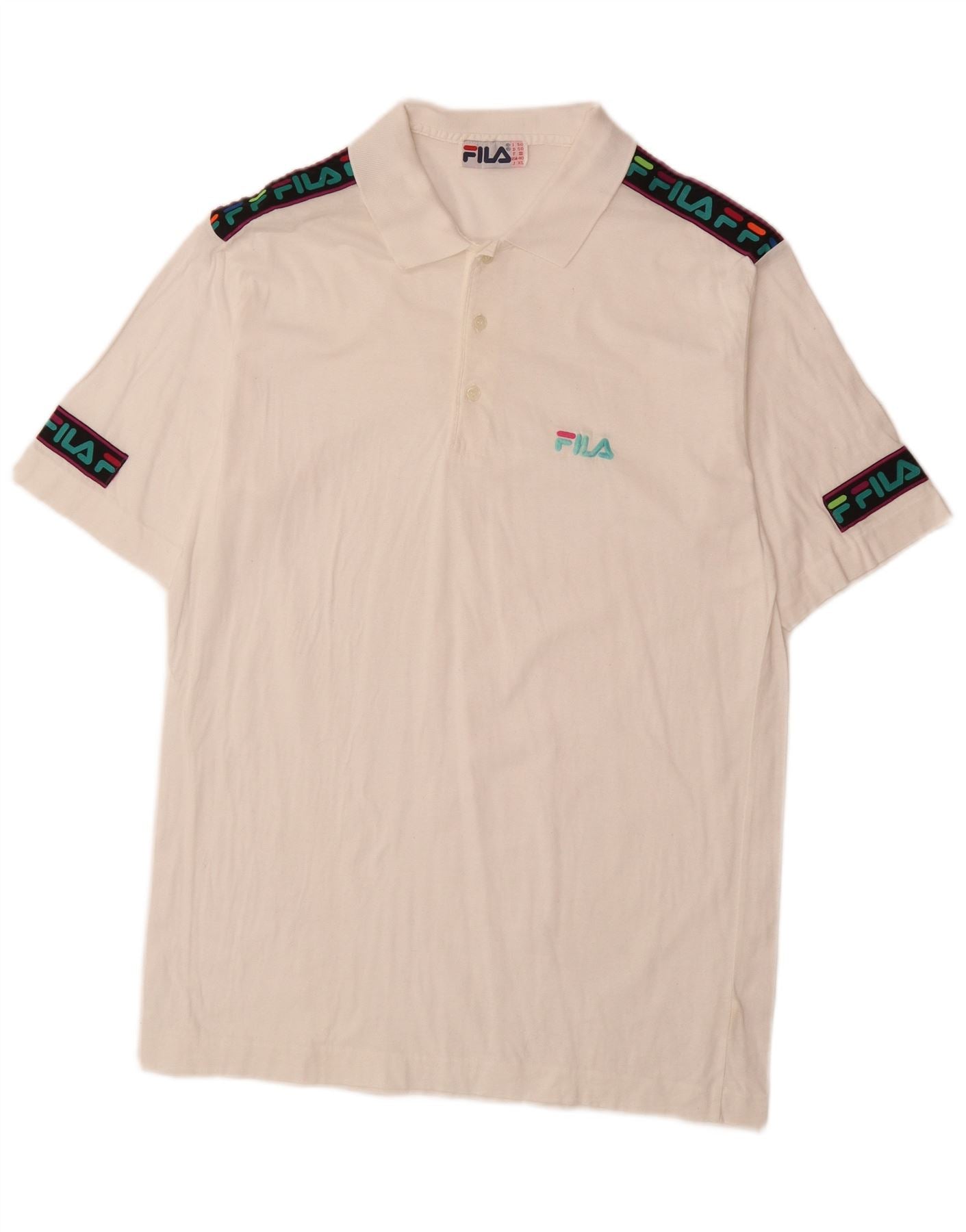 FILA Mens Graphic Polo Shirt IT 50 Medium White Colourblock Cotton