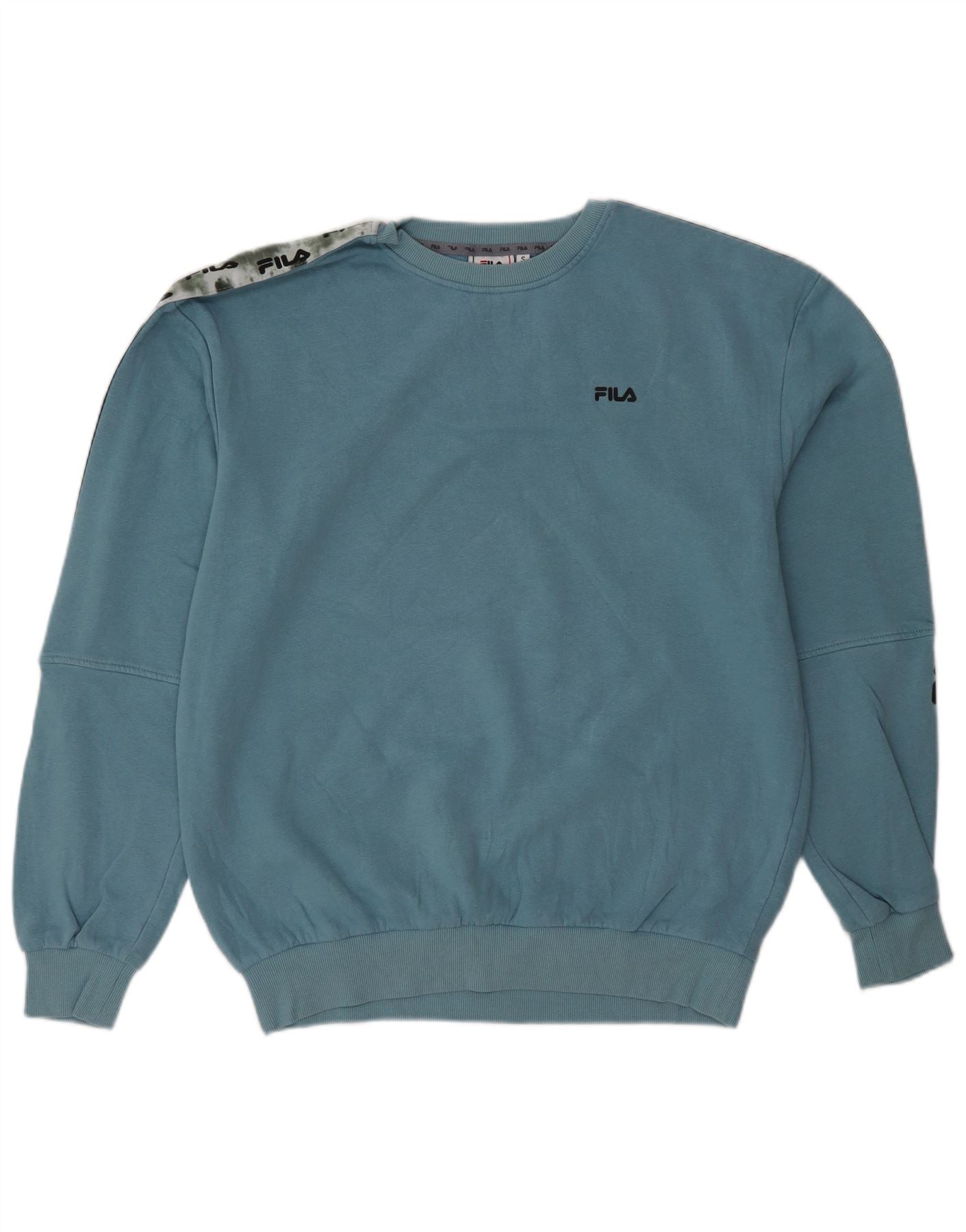FILA Mens Graphic Sweatshirt Jumper Small Blue Colourblock Cotton