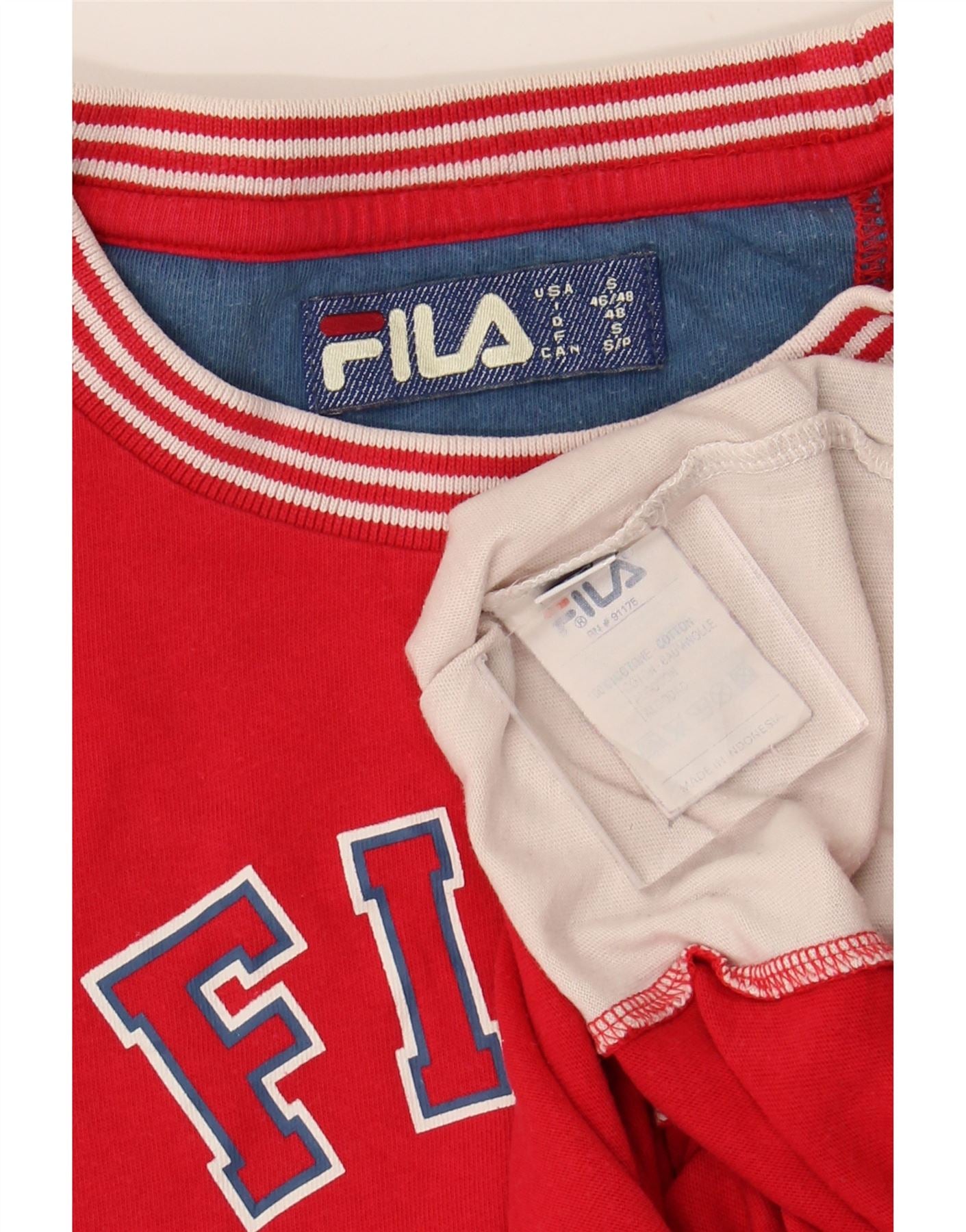 FILA Mens Graphic T-Shirt Top Small Red Colourblock Cotton
