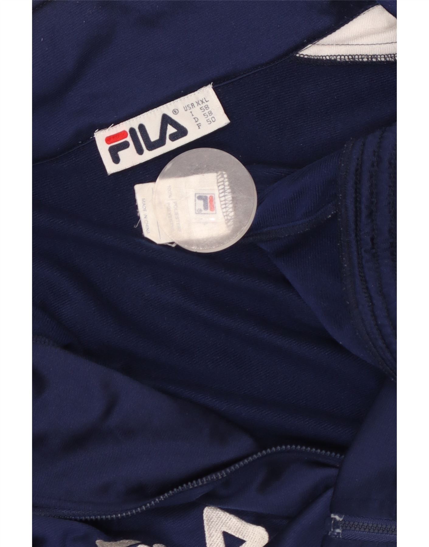 FILA Mens Graphic Tracksuit Top Jacket 2XL Navy Blue Colourblock Polyester