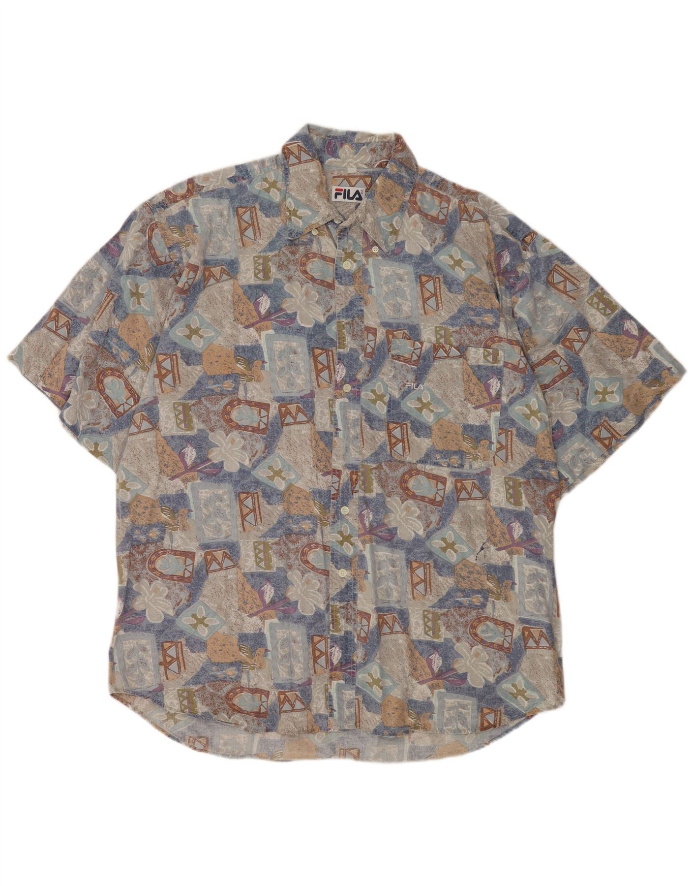FILA Mens Short Sleeve Shirt 2XL Multicoloured Floral Cotton