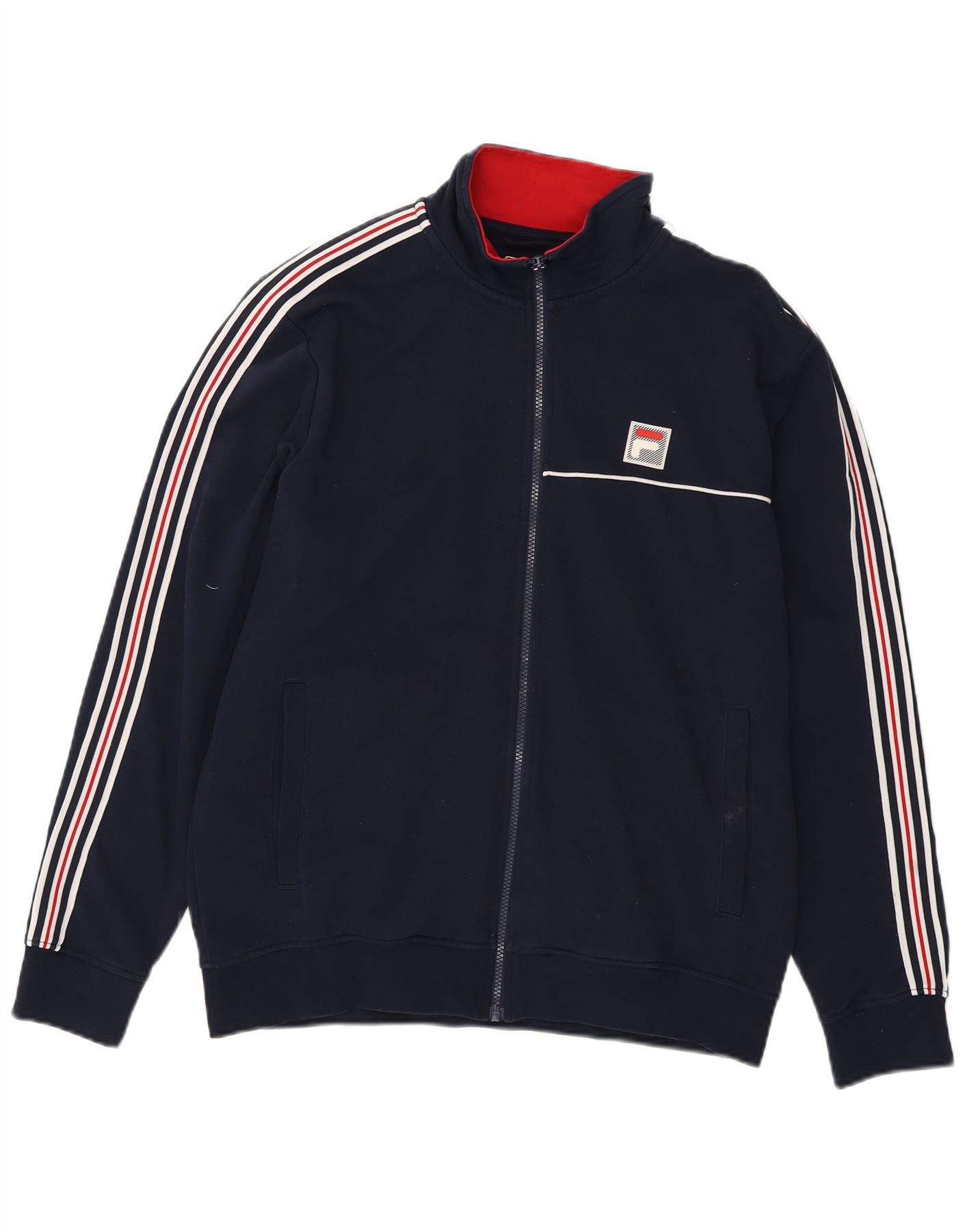 FILA Mens Tracksuit Top Jacket Large Navy Blue Cotton