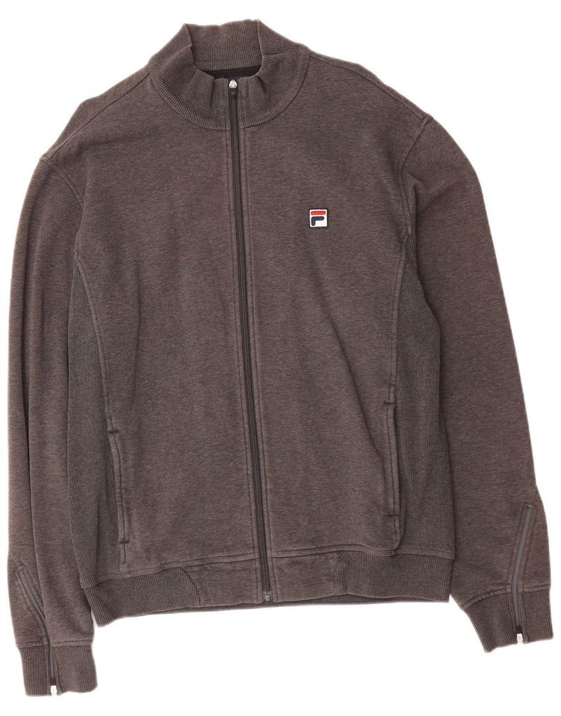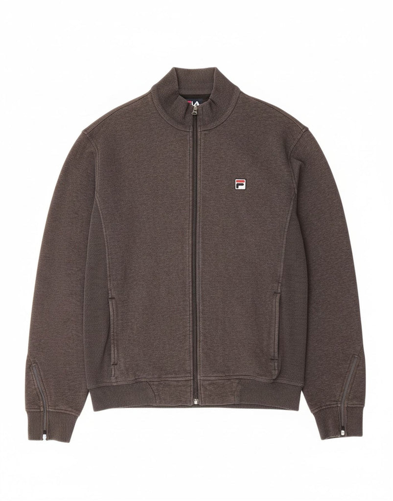 - AI Description: This Fila mens tracksuit top jacket is crafted from a comfortable grey knit fabric. It features a collared neckline and long sleeves. The full zip closure offers versatile wear. A regular fit ensures ease of movement. Practical pockets are included. A distinctive Fila logo provides a signature accent. This sports style jacket is ideal for active wear or casual layering.