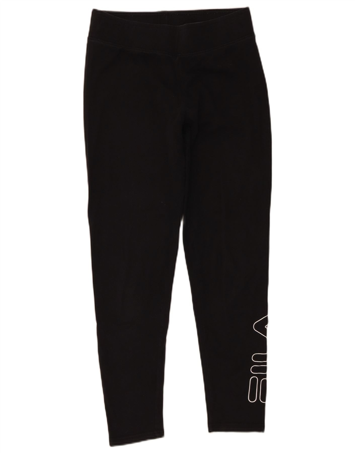 FILA Womens Graphic Leggings UK 14 Medium Black Cotton
