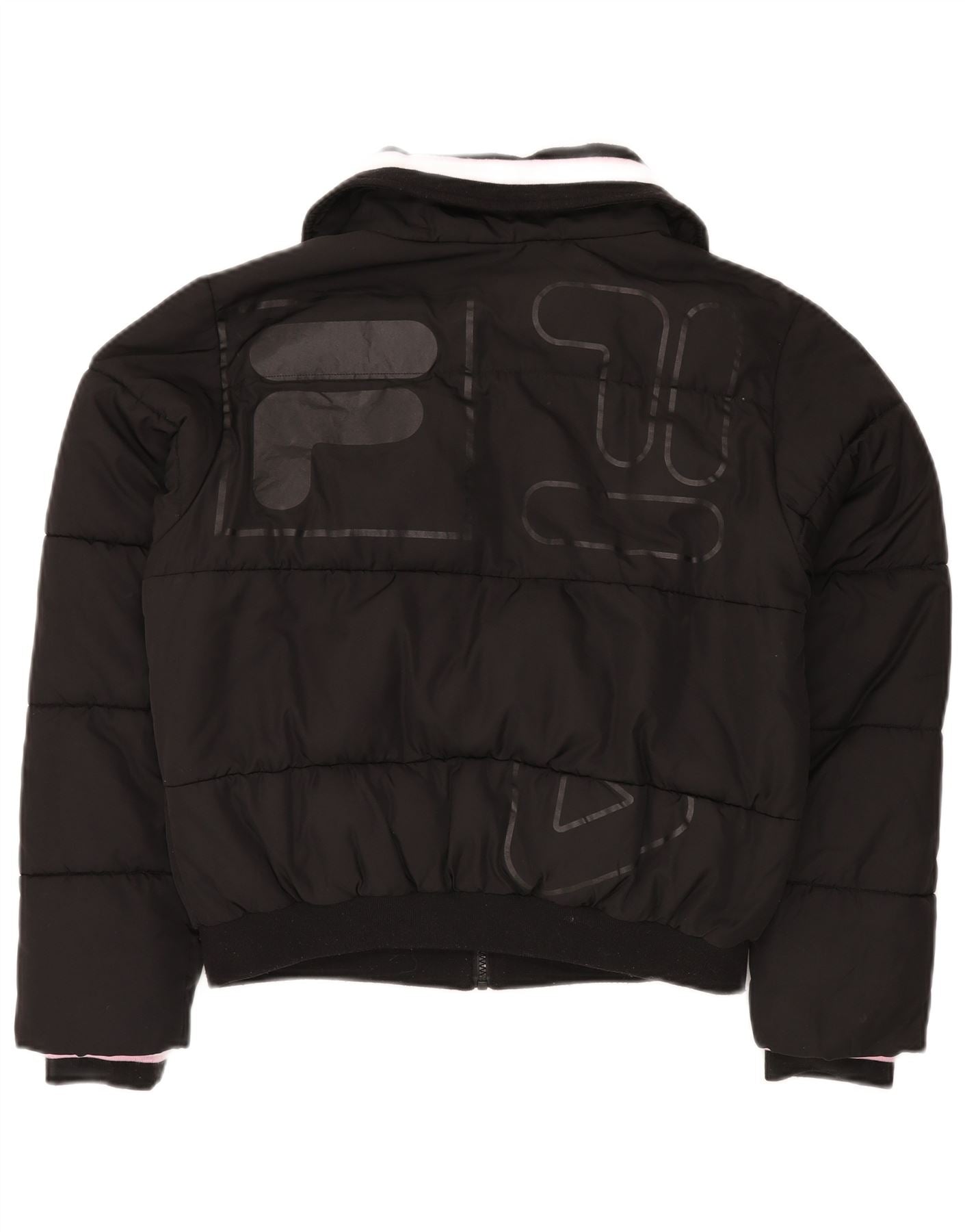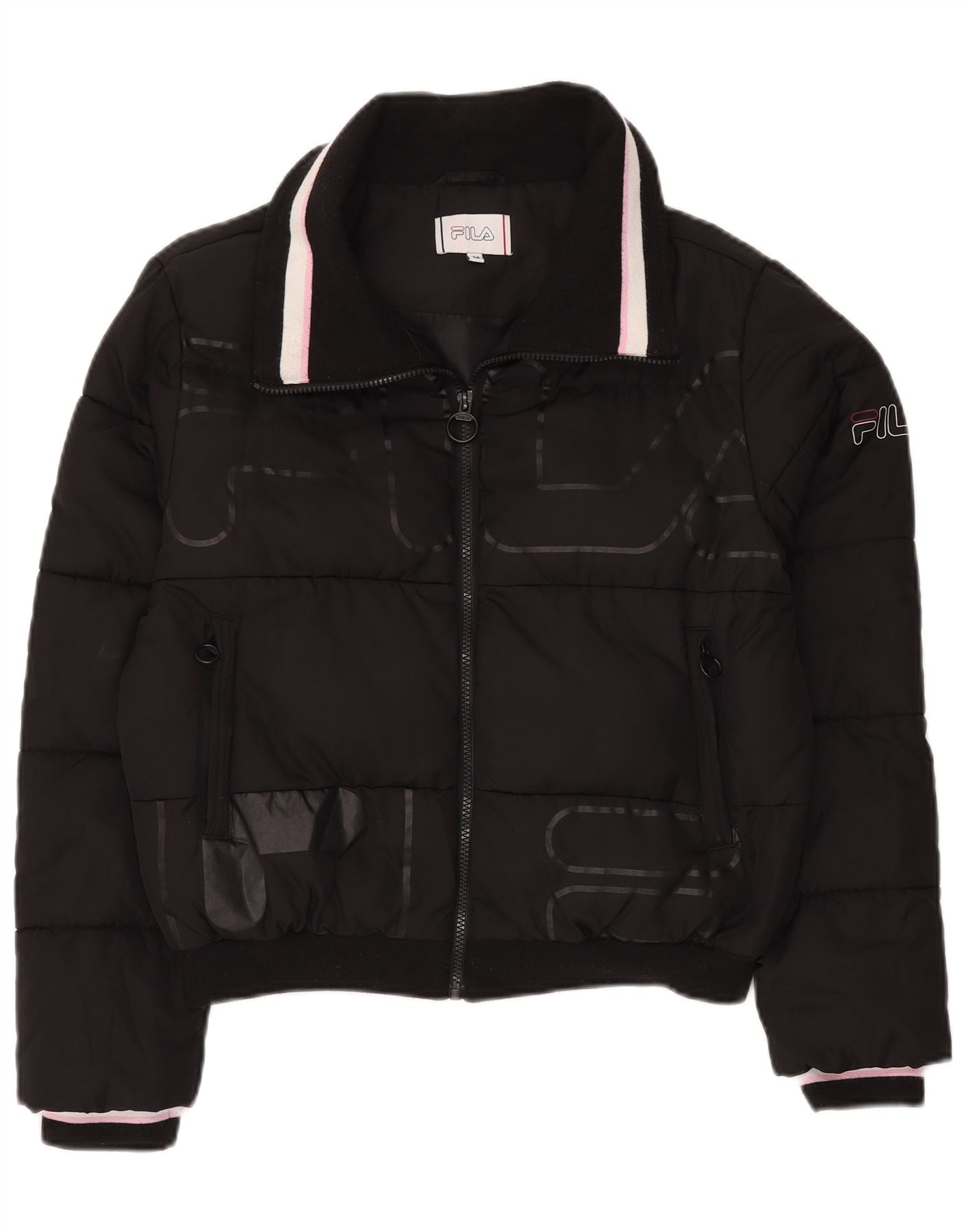 FILA Womens Graphic Padded Jacket UK 14 Medium Black Polyester
