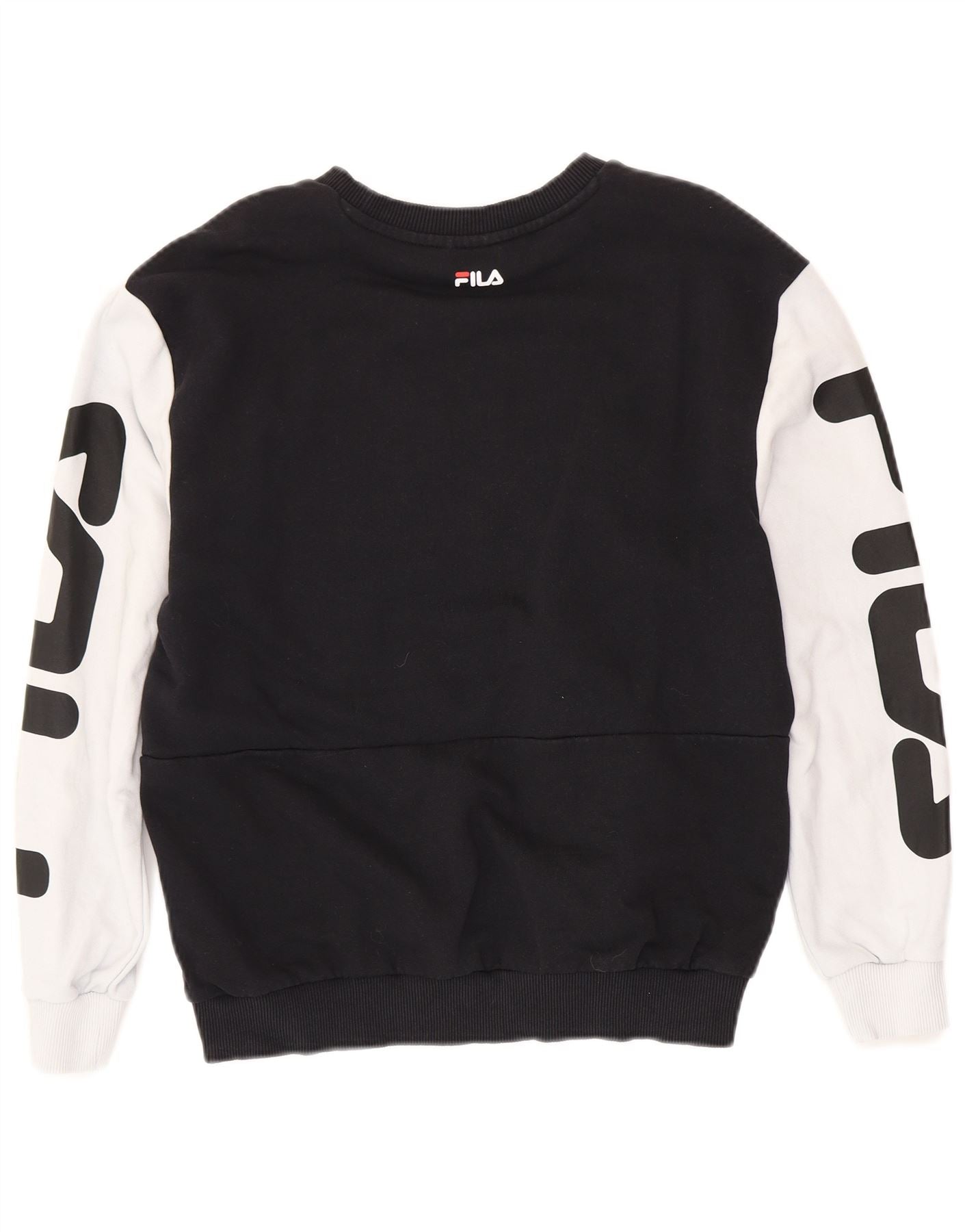 FILA Womens Graphic Sweatshirt Jumper UK 14 Medium Black Colourblock