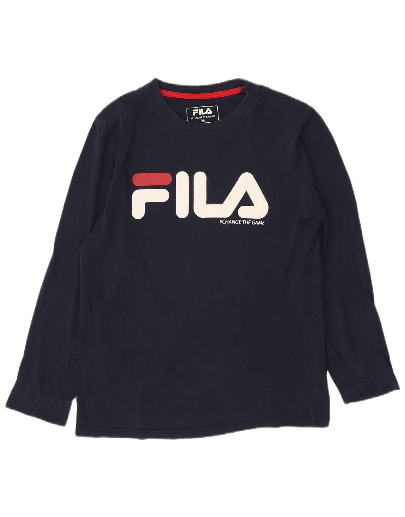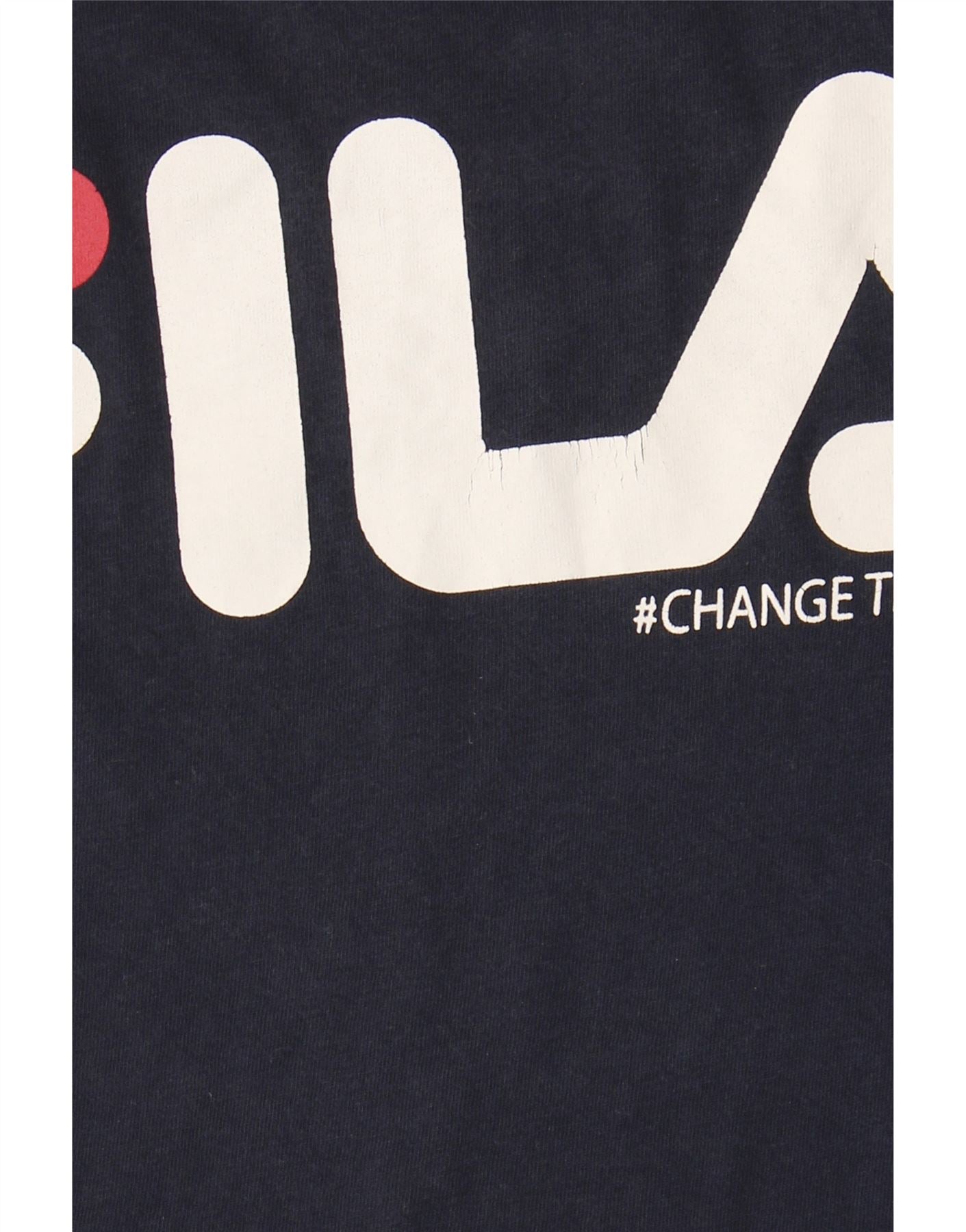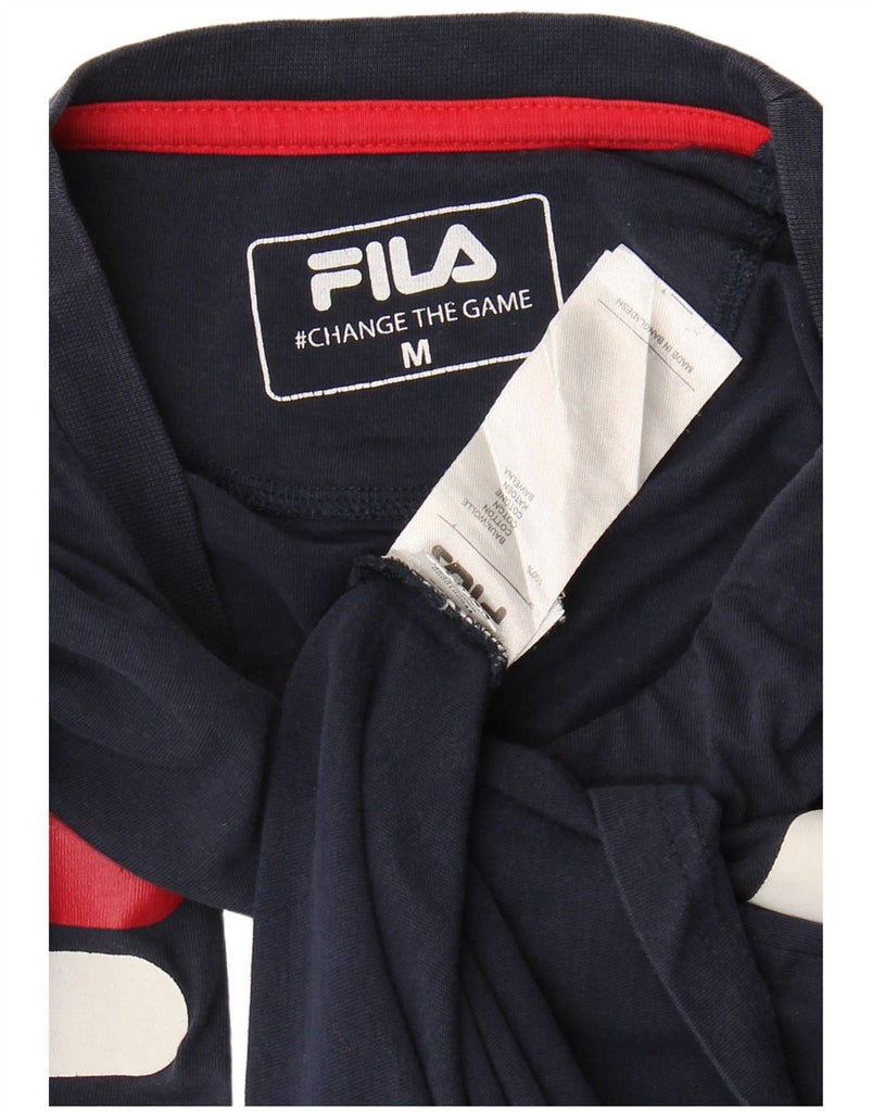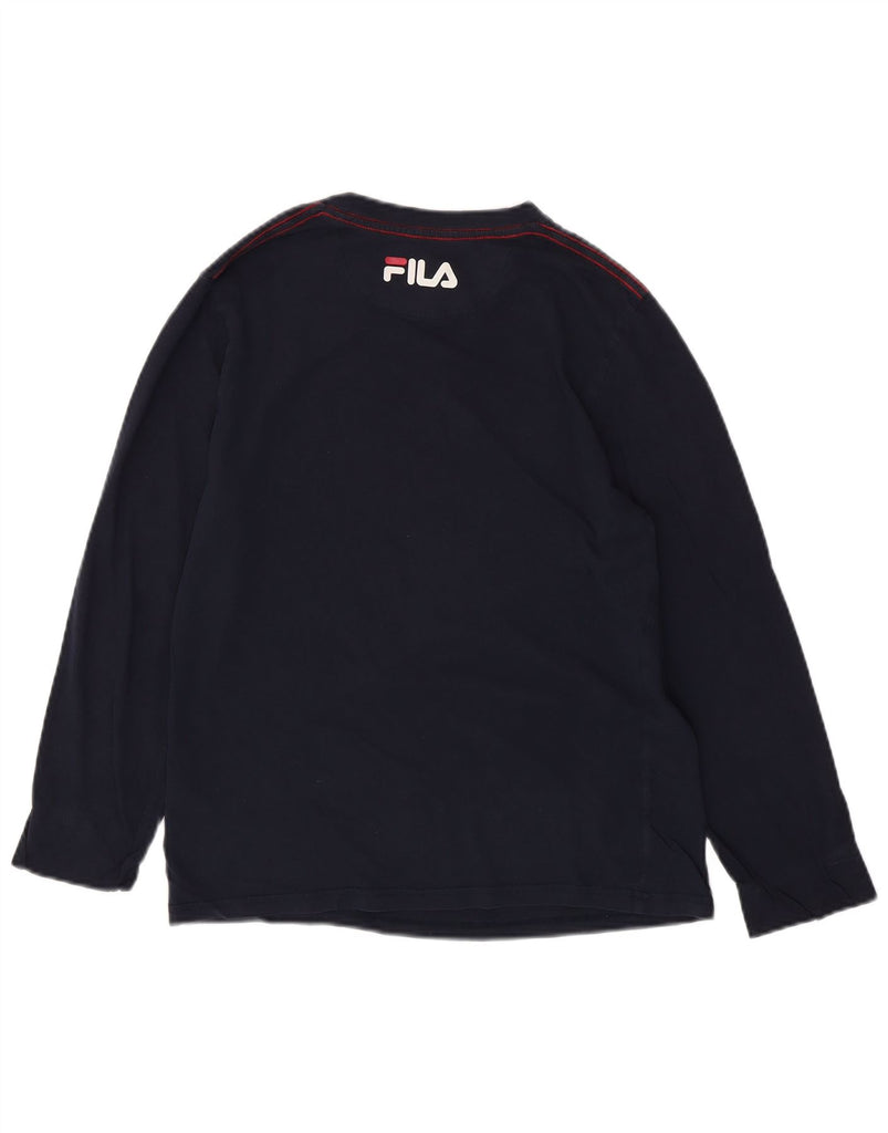 FILA Womens Graphic Top Long Sleeve UK 14 Medium Navy Blue Cotton