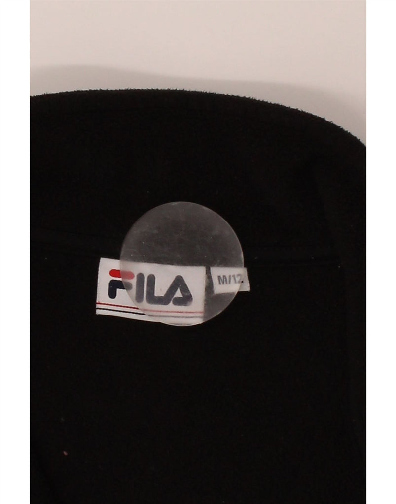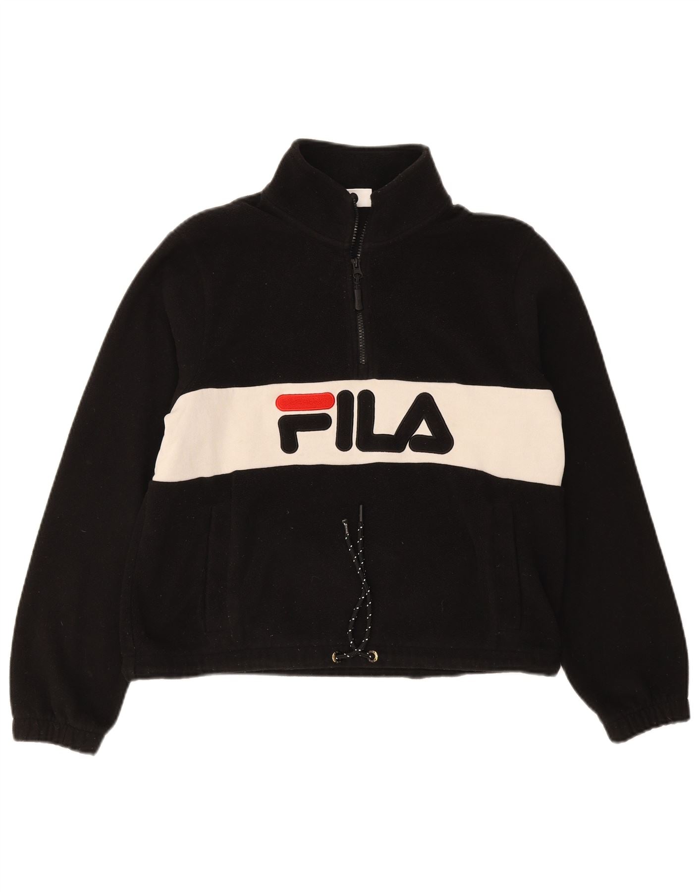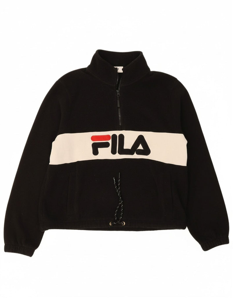 FILA Womens Graphic Zip Neck Fleece Jumper UK 12 Medium Black Colourblock