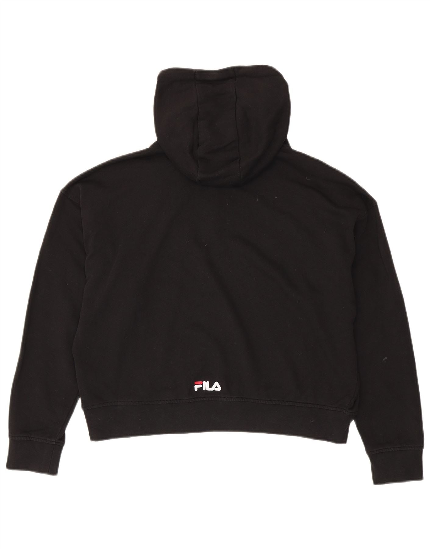 FILA Womens Oversized Crop Graphic Hoodie Jumper UK 6 XS Black