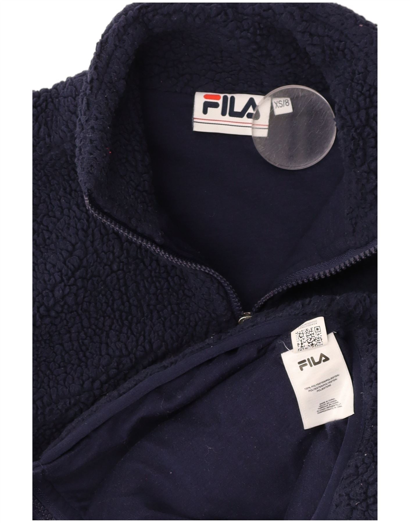 FILA Womens Oversized Graphic Fleece Jacket UK 6 XS Navy Blue Polyester