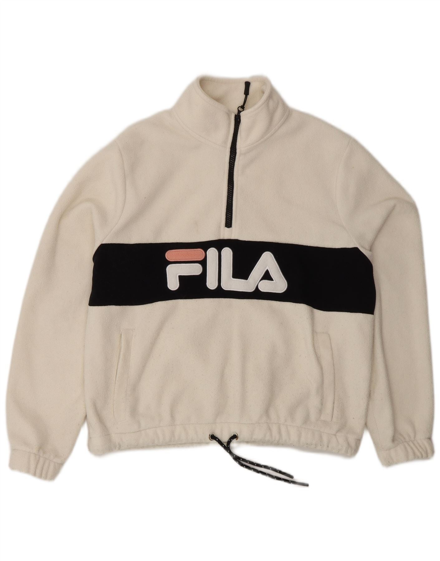 FILA Womens Oversized Graphic Fleece Jumper UK 10 Small White Colourblock
