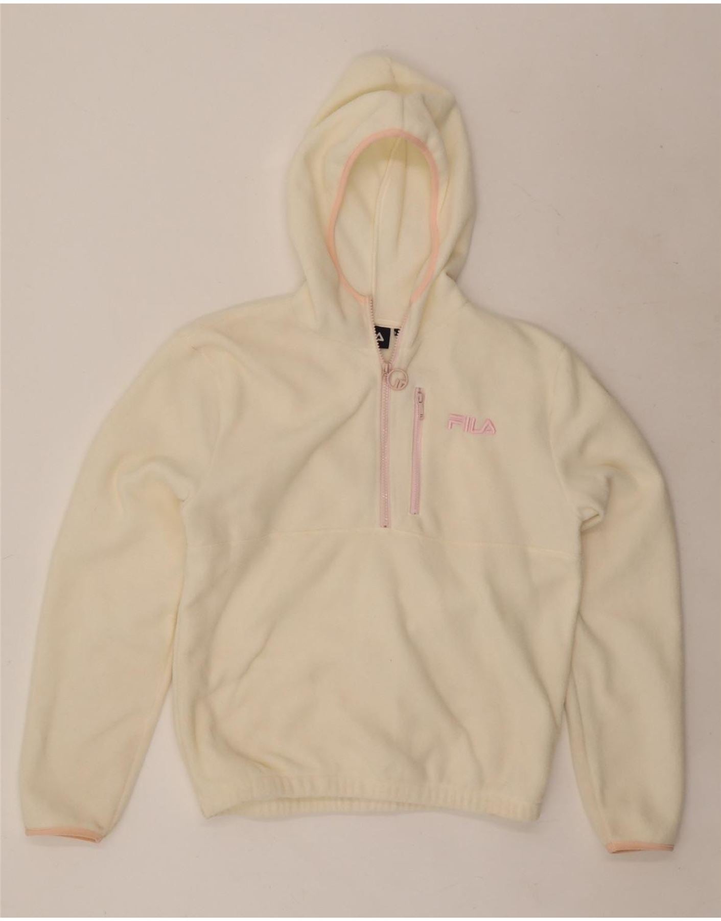 FILA Womens Oversized Hooded Zip Neck Fleece Jumper UK 6 XS Off White