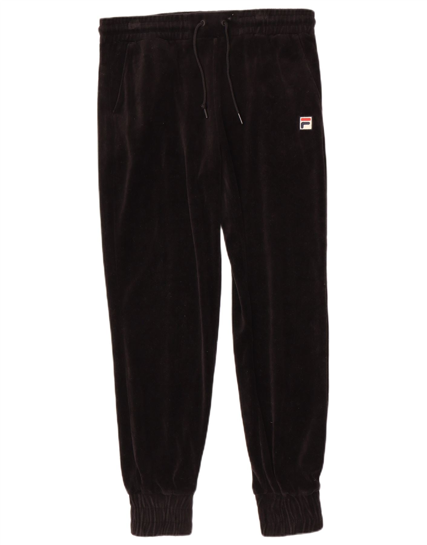 FILA Womens Velour Tracksuit Trousers Joggers UK 14 Medium Black Cotton