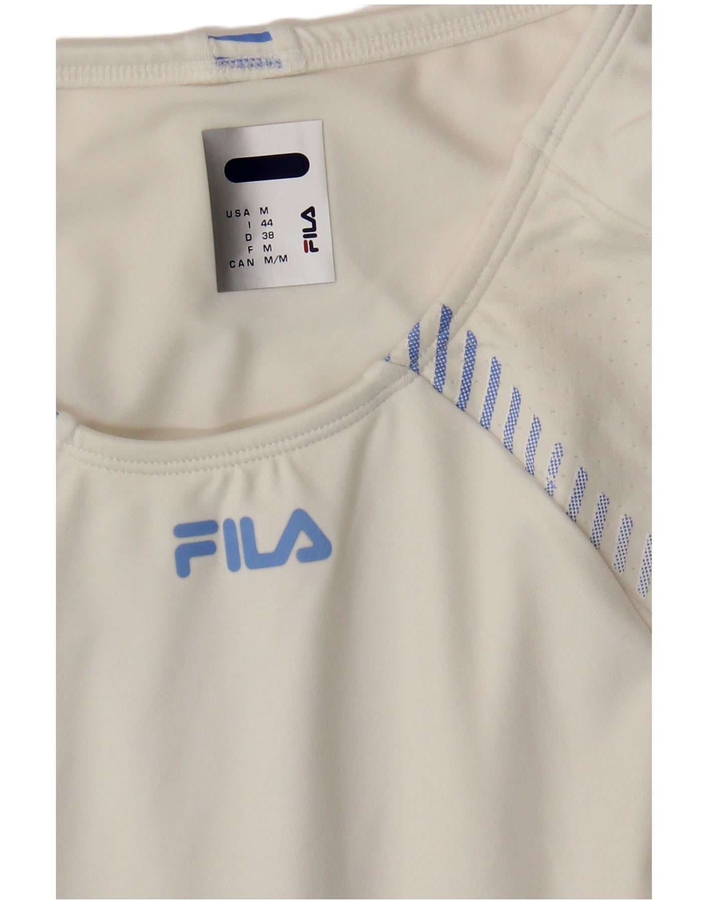 FILA Womens Vest Top IT 44 Medium White Striped Polyamide