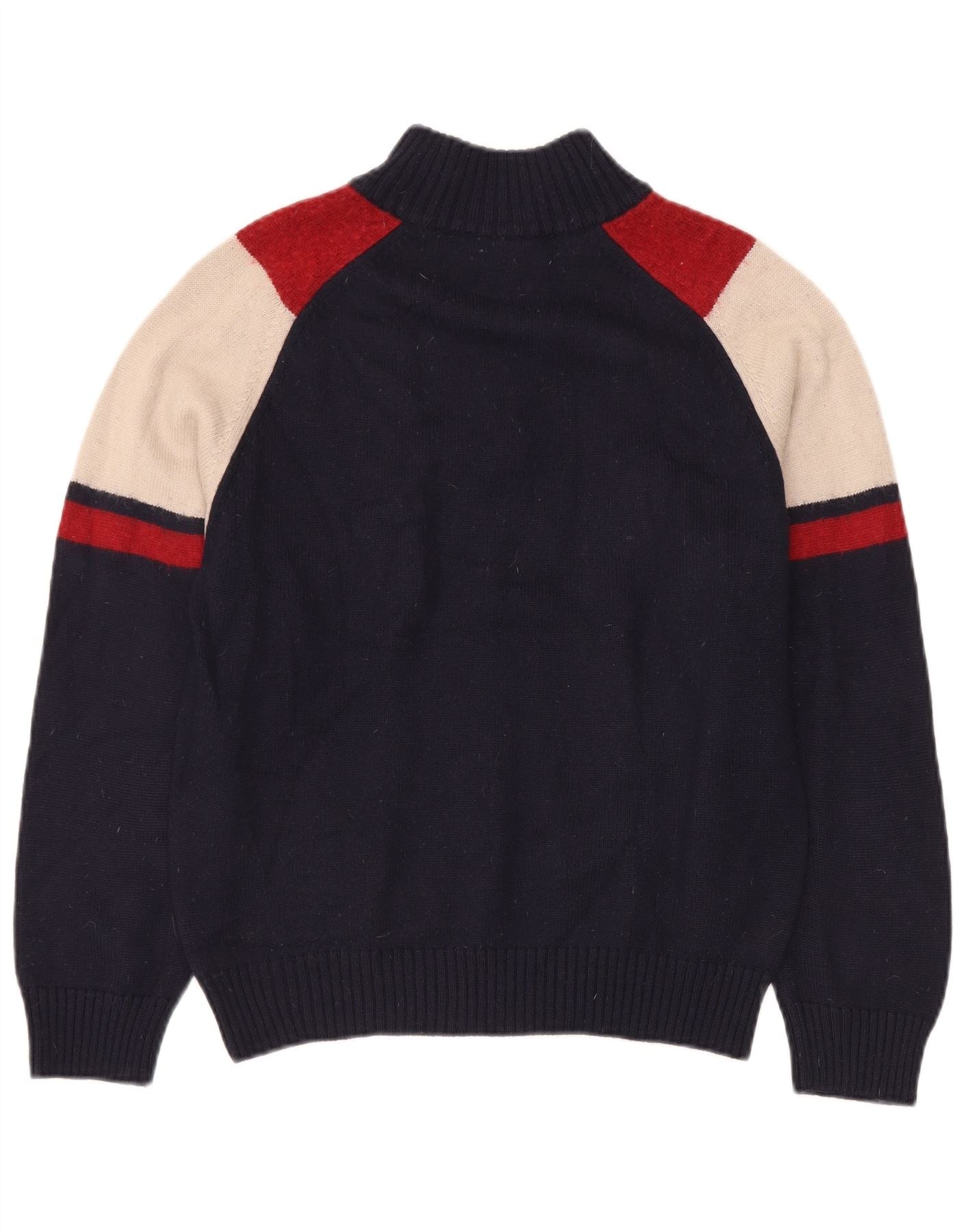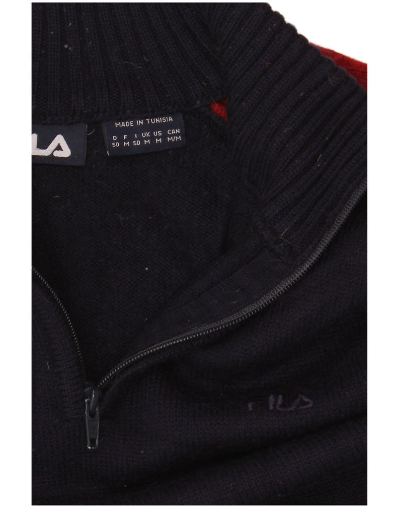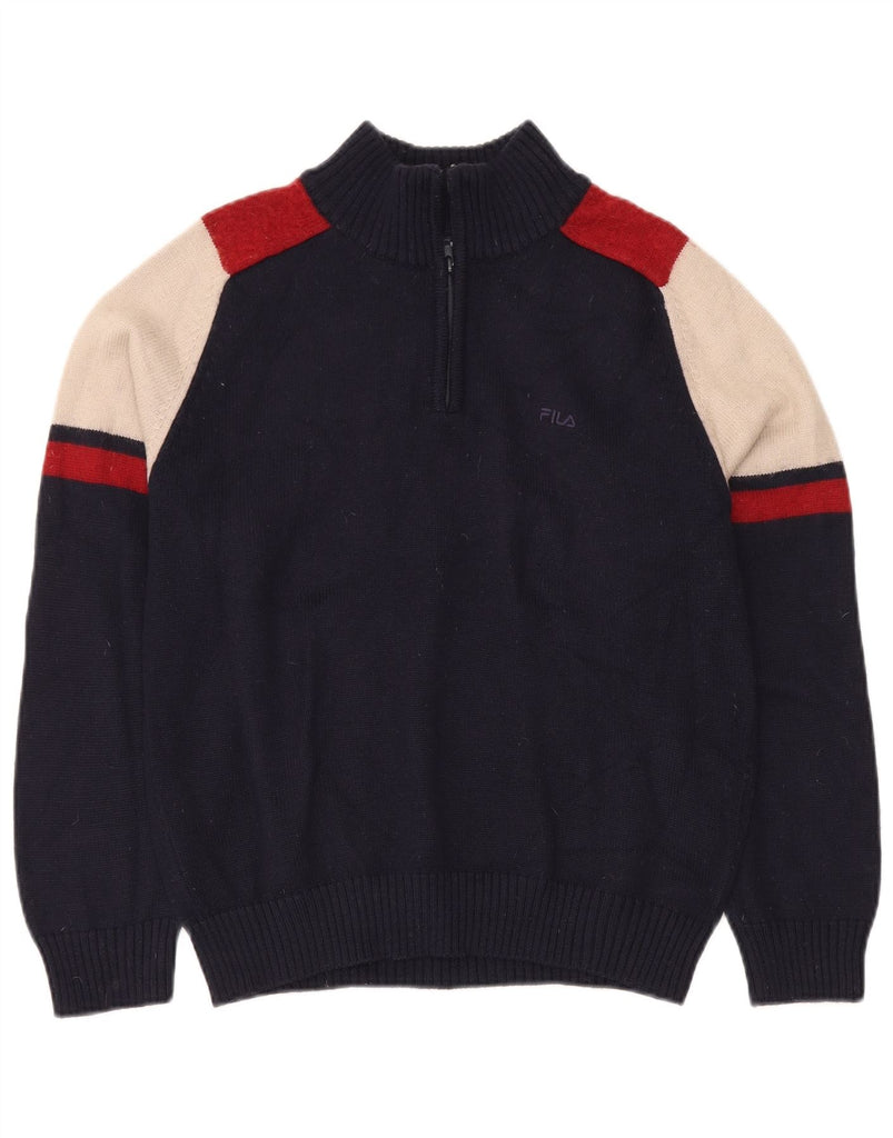 FILA Womens Zip Neck Jumper Sweater UK 14 Medium Navy Blue Colourblock