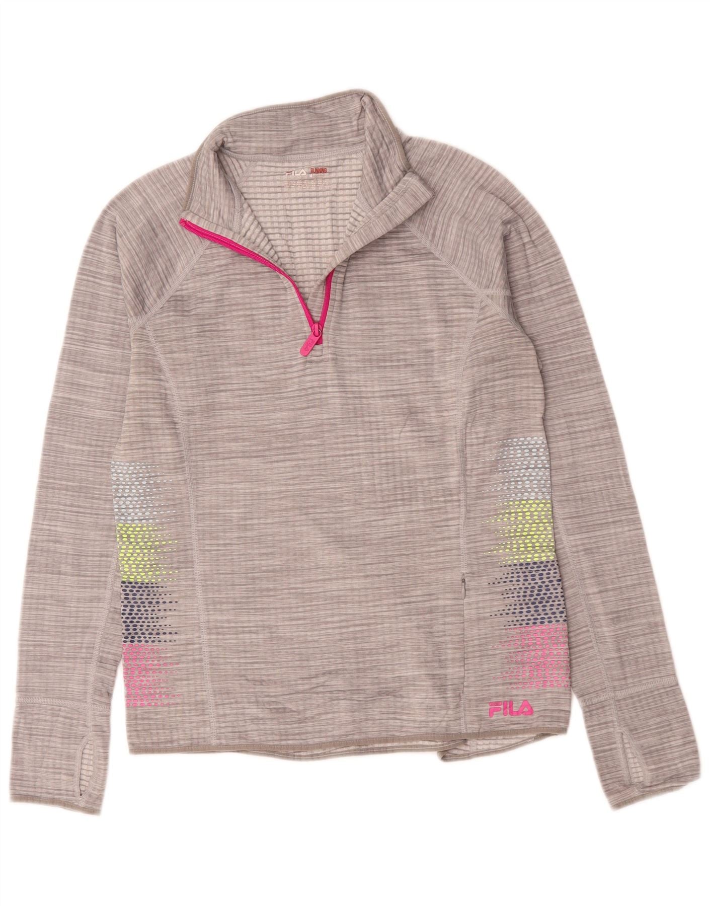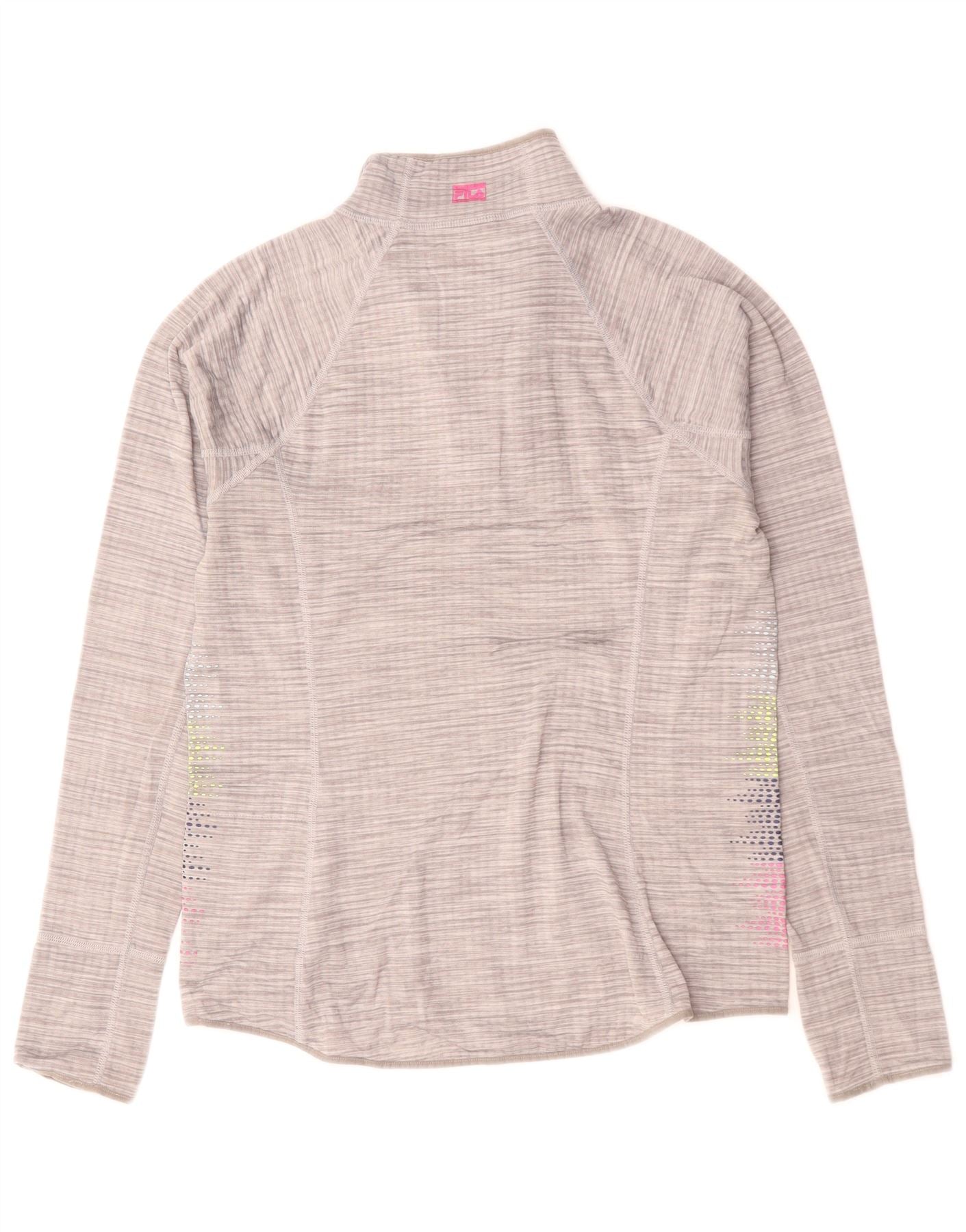 Fila Womens Zip Neck Pullover Tracksuit Top UK 14 Medium Grey Flecked