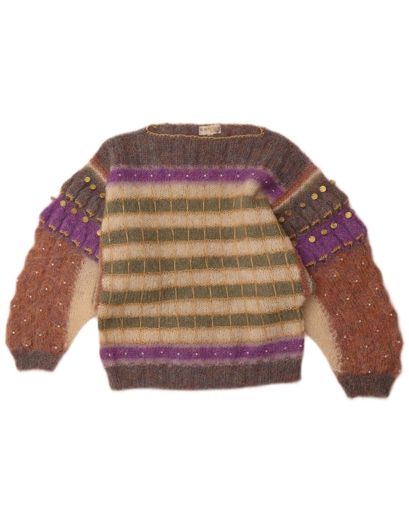 FIONA MACLEOD Womens Boat Neck Jumper Sweater UK 14 Medium Multicoloured