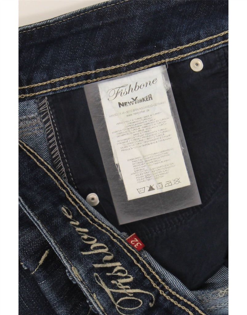FISHBONE Womens Low Waist Slim Jeans W32 L32 Navy Blue Cotton